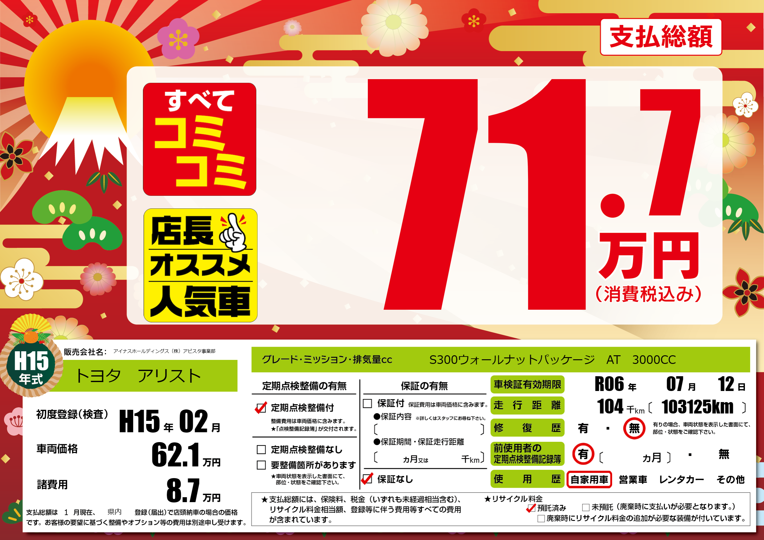 アイナスホールディングス(株)アピスタ事業部の展示車をすべて見る