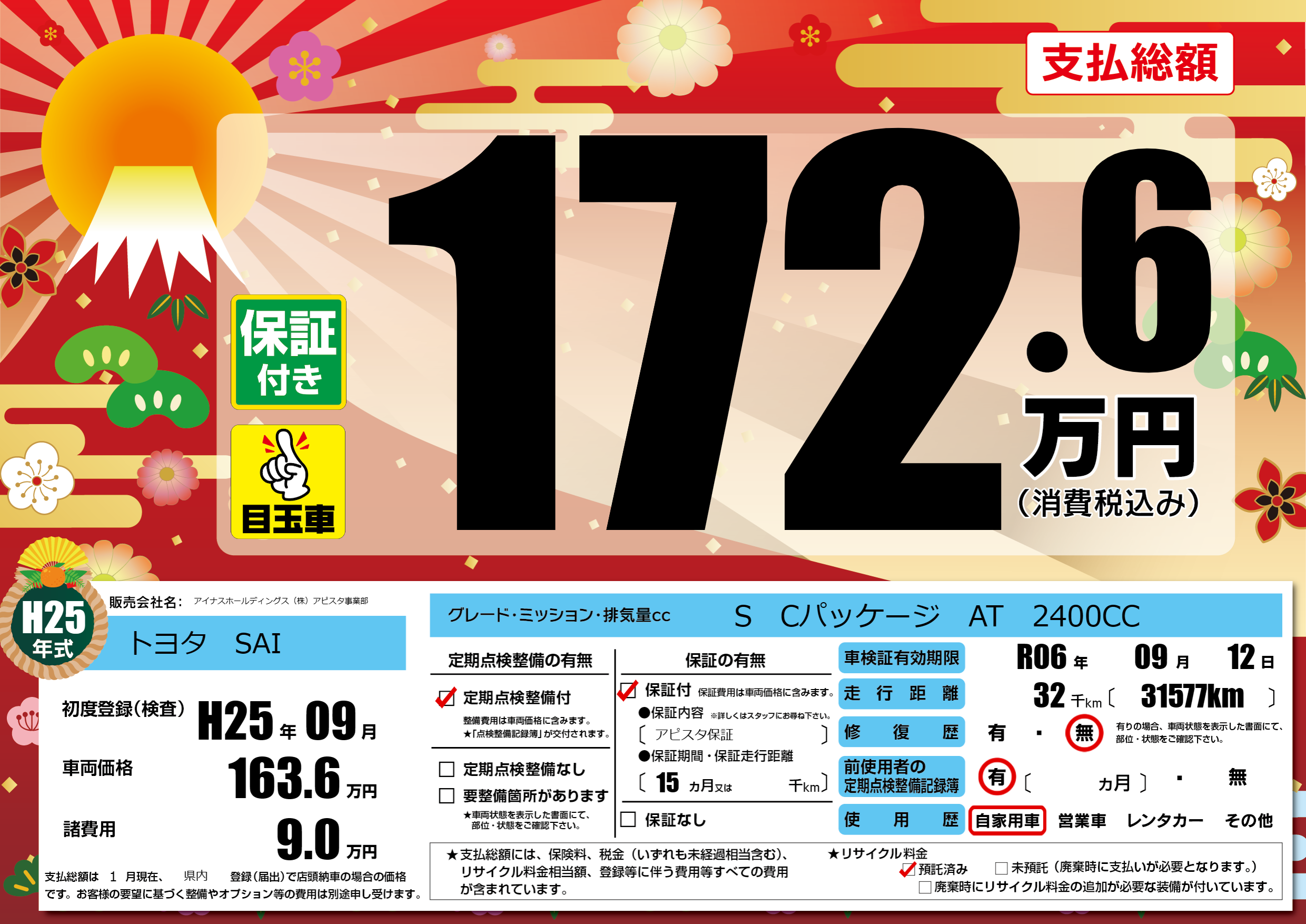 | 車名 | トヨタ SAI | グレード ミッション 排気量 |