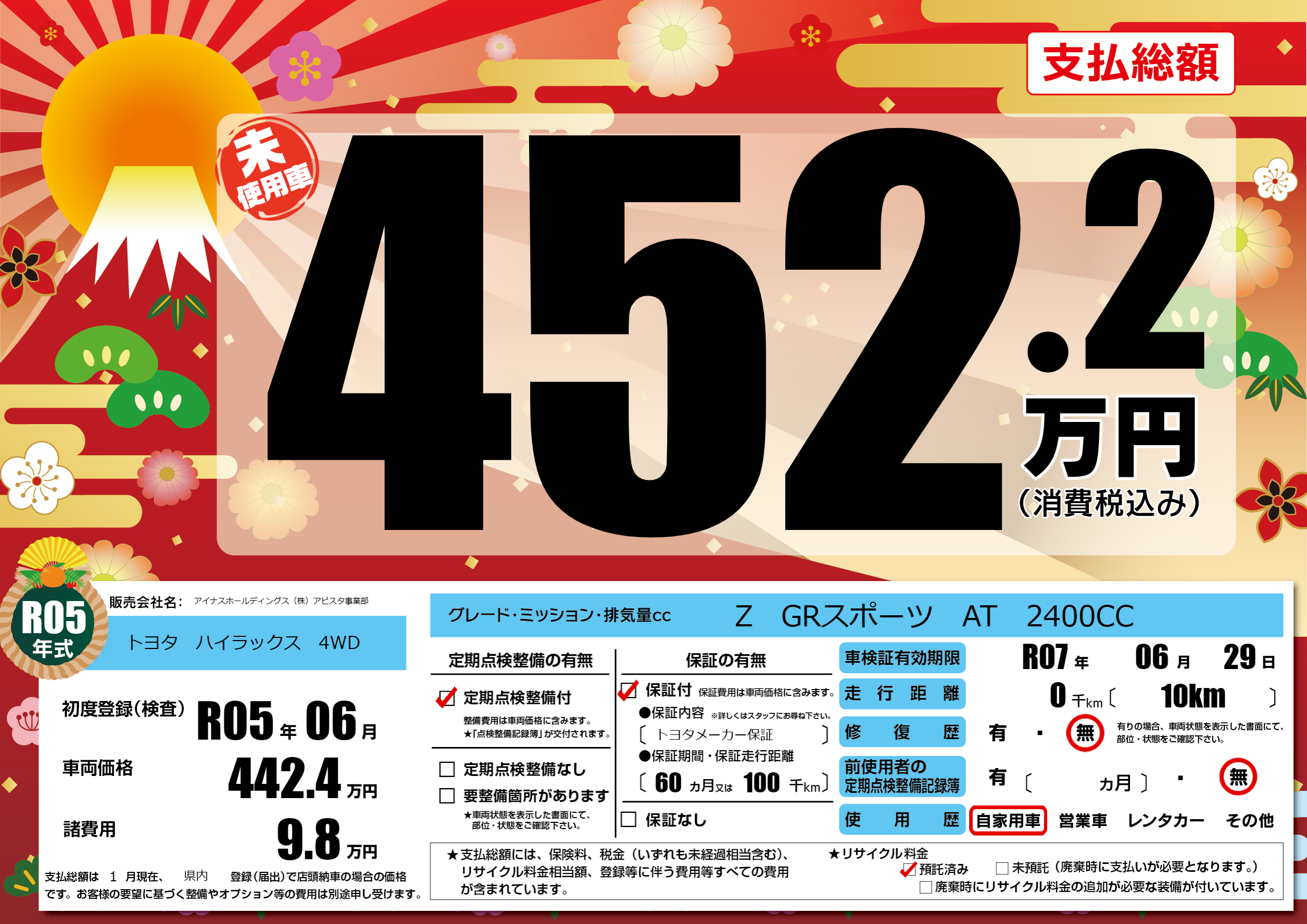 | 走行キロ | - | 初年度登録 | R05年06月 |