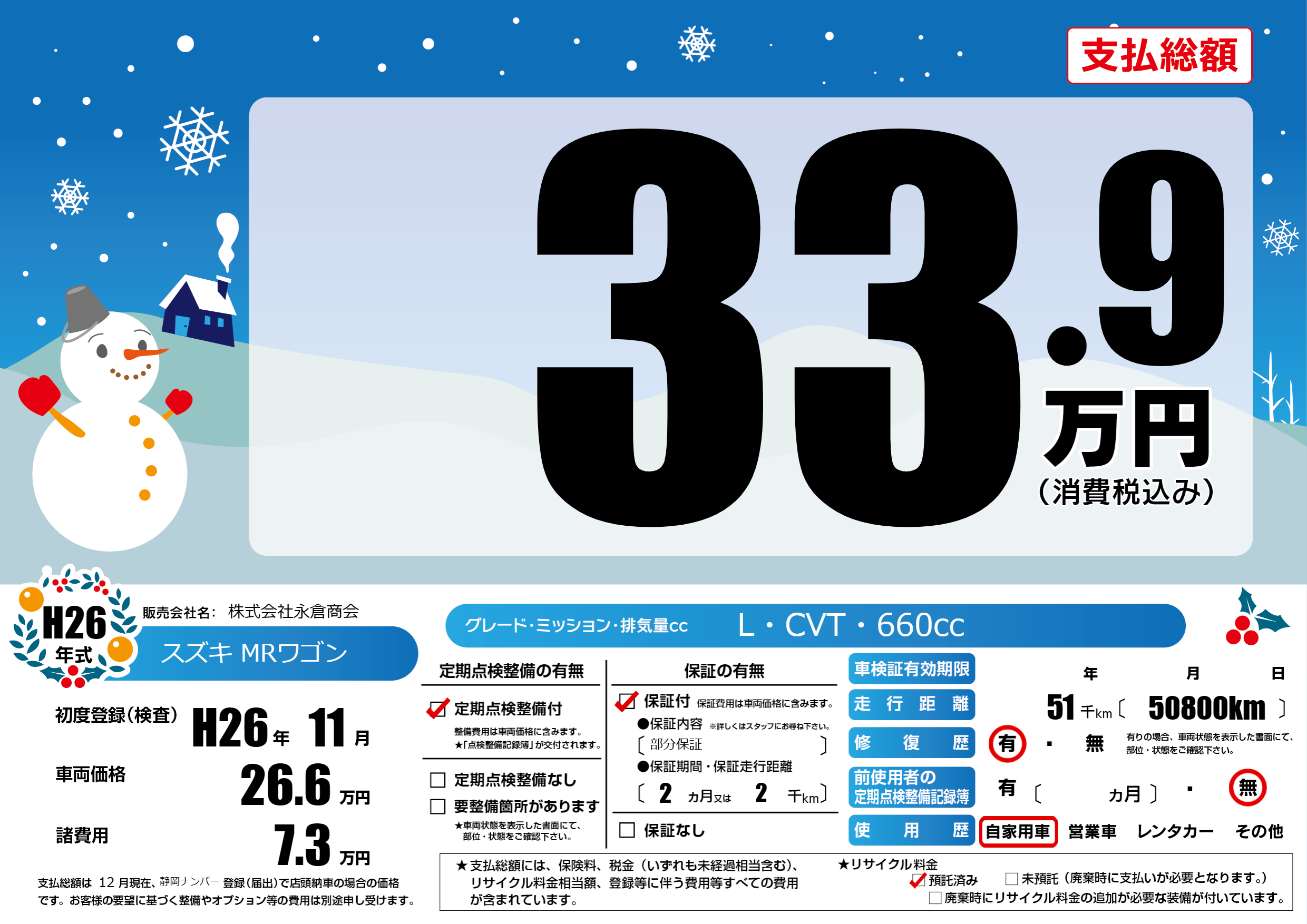 | 走行キロ | 5.1万km | 初年度登録 | H26年11月 |
