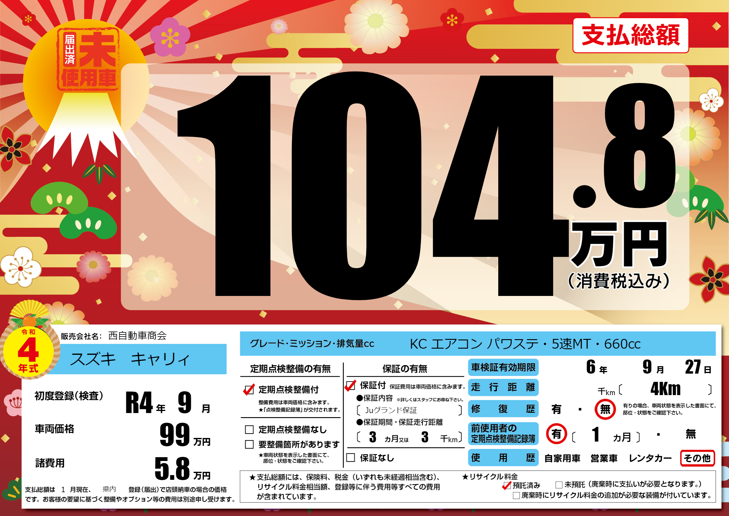 | 走行キロ | - | 初年度登録 | R4年9月 |