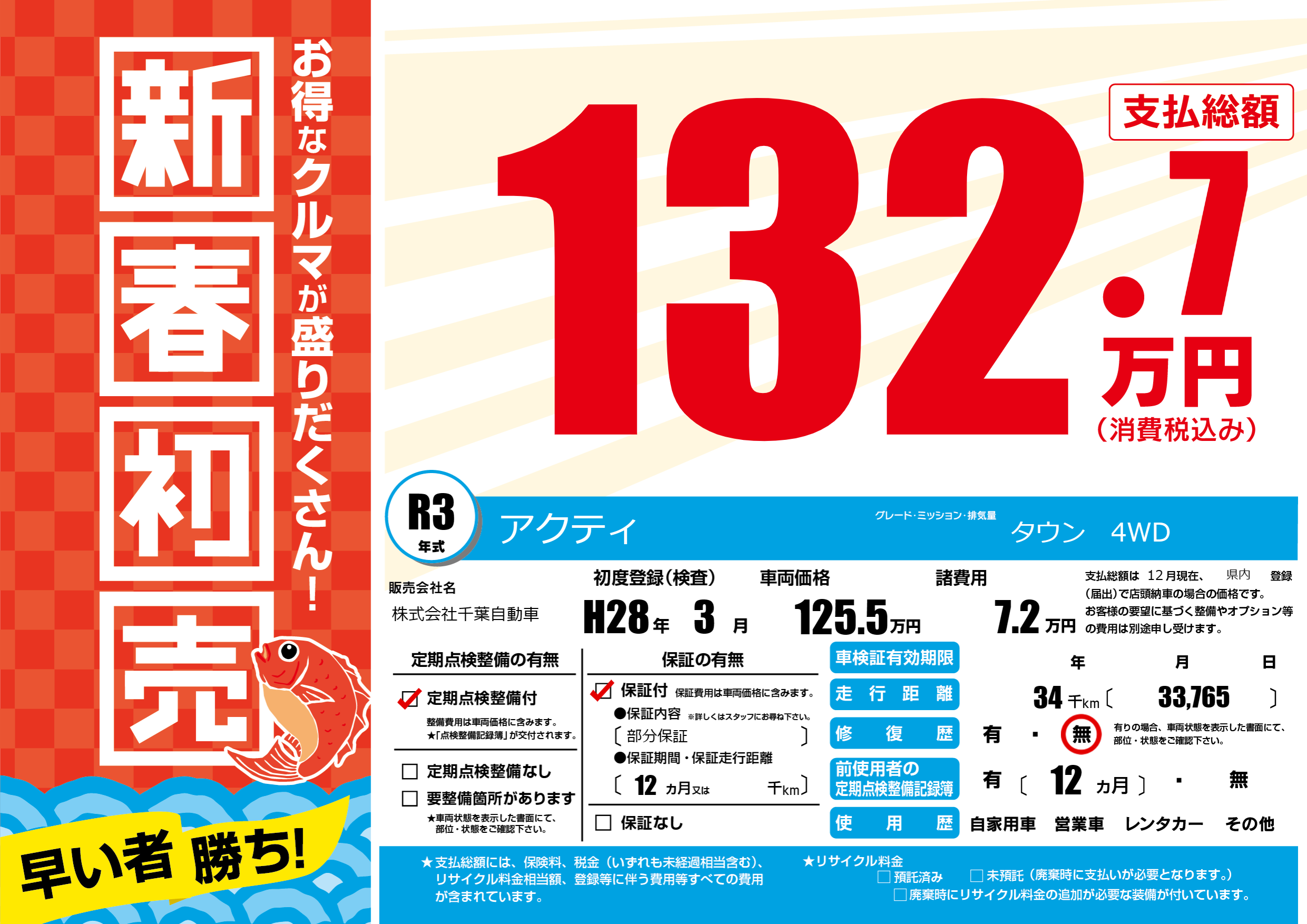 | 車名 | アクティ | グレード ミッション 排気量 |