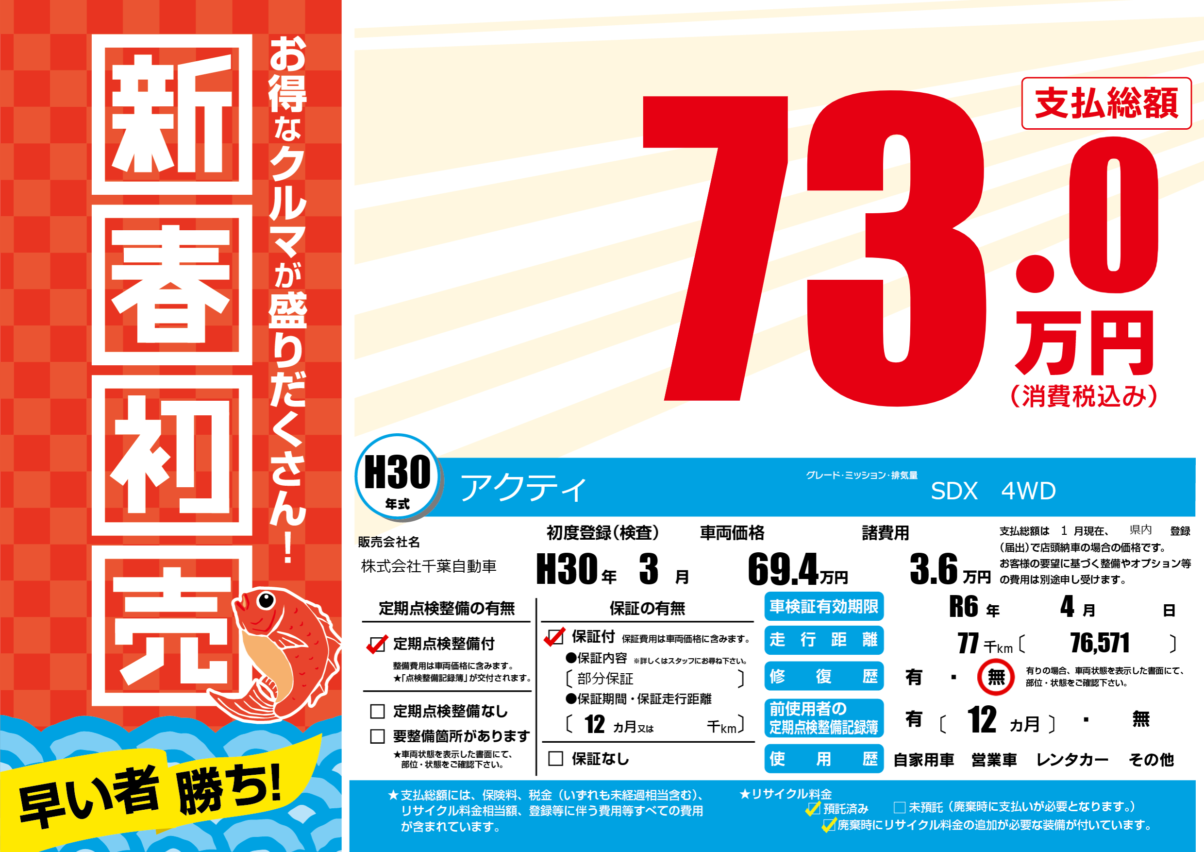 | 車検制限 | R6年 4月 - 日 | ||