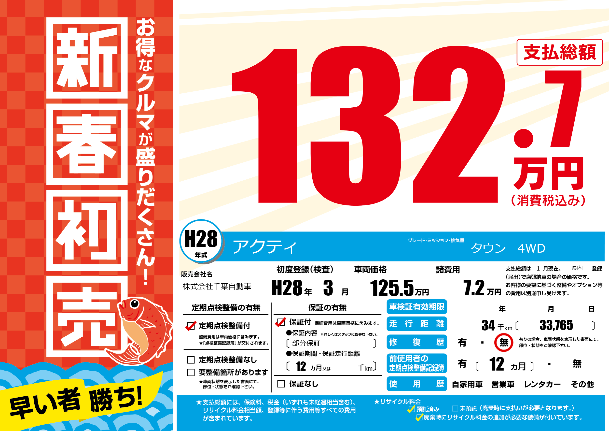 | 車名 | アクティ | グレード ミッション 排気量 |