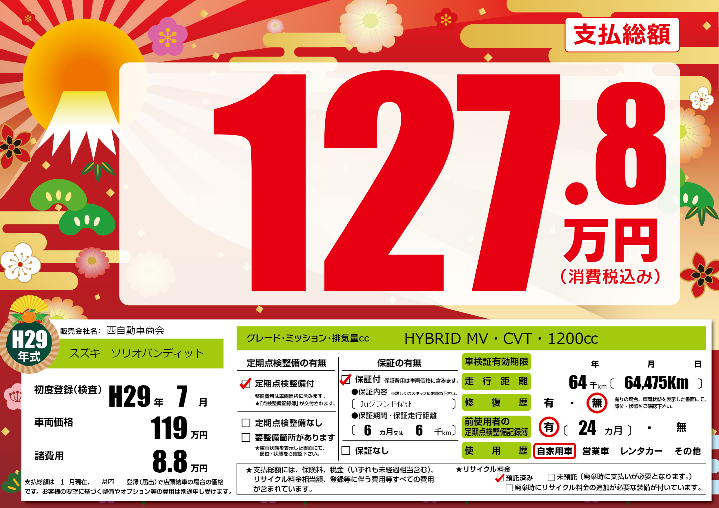 | 車名 | スズキ ソリオバンディット | グレード ミッション 排気量 |