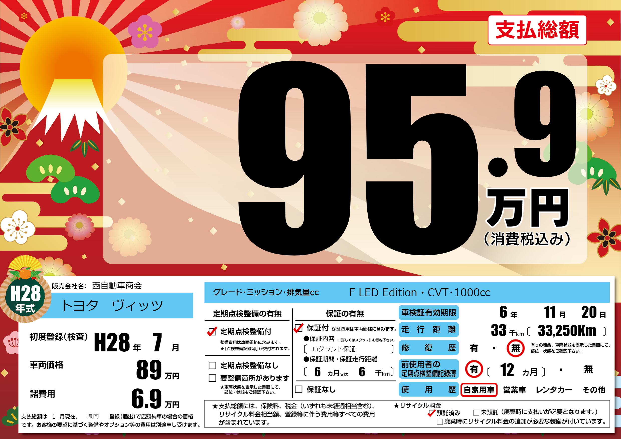 | 車名 | トヨタ ヴィッツ | グレード ミッション 排気量 |