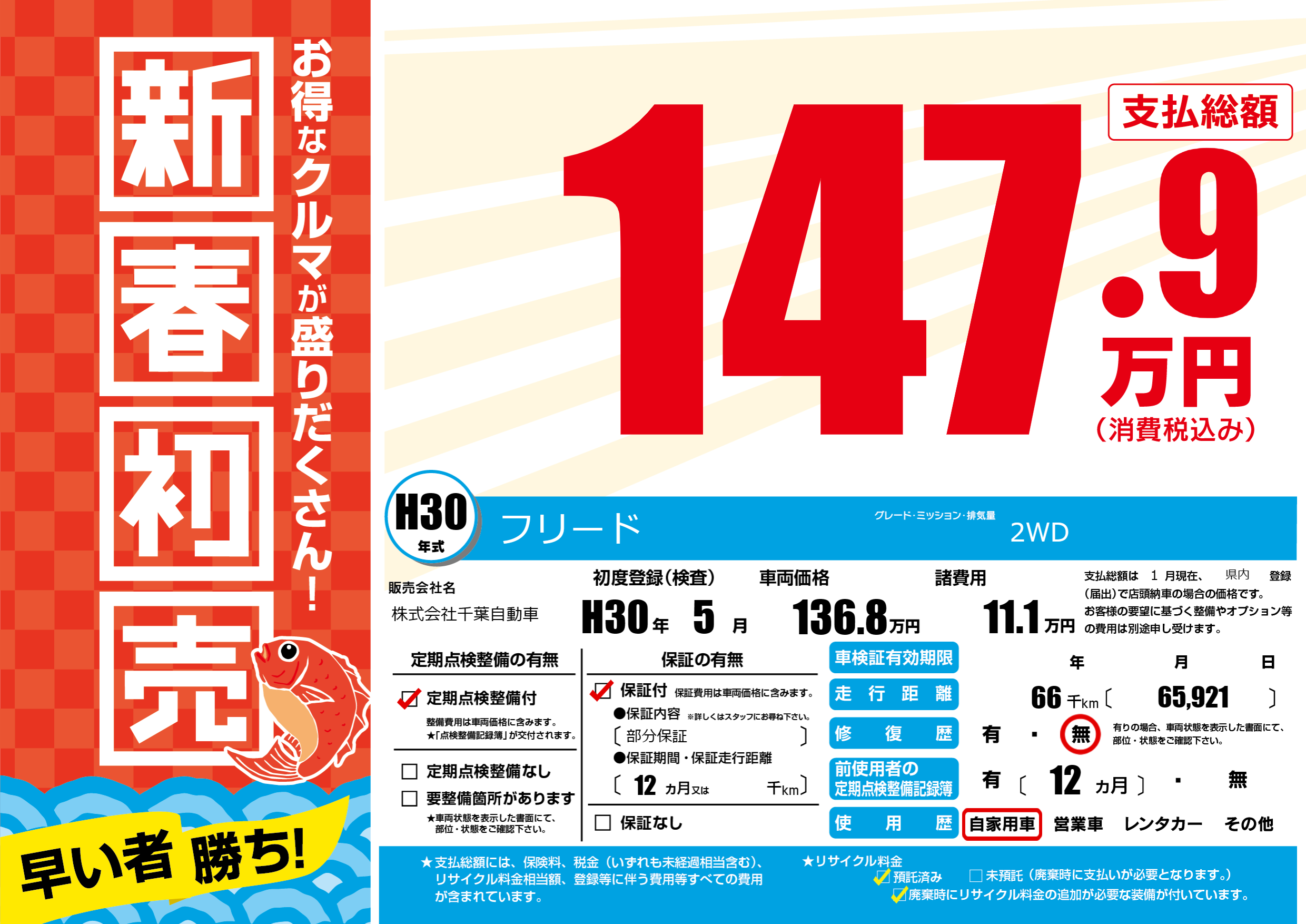 | 走行キロ | 6.6万km | 初年度登録 | H30年5月 |