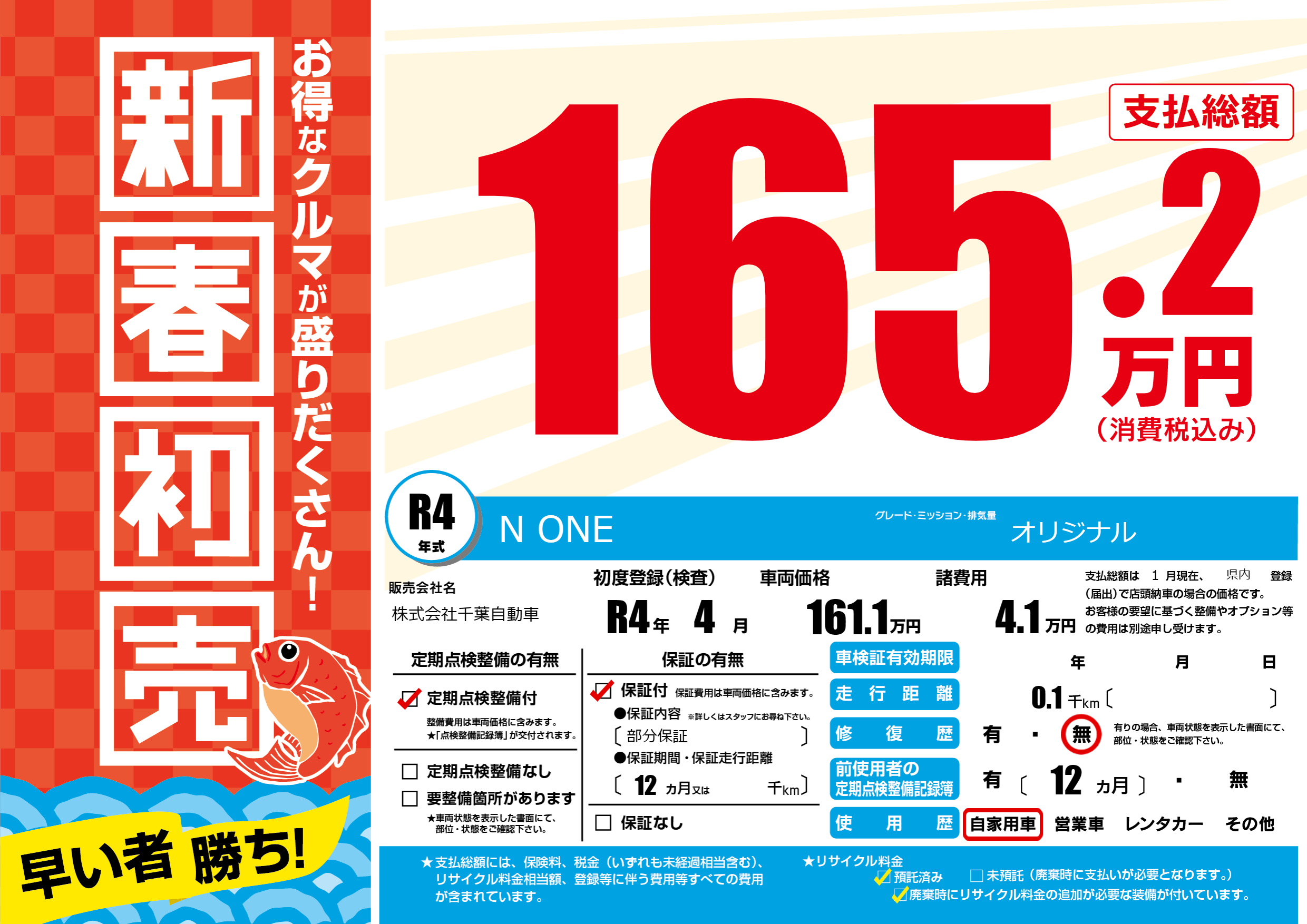 保証付き 保証内容(部分保証) 12ヶ月または()千kmまで |