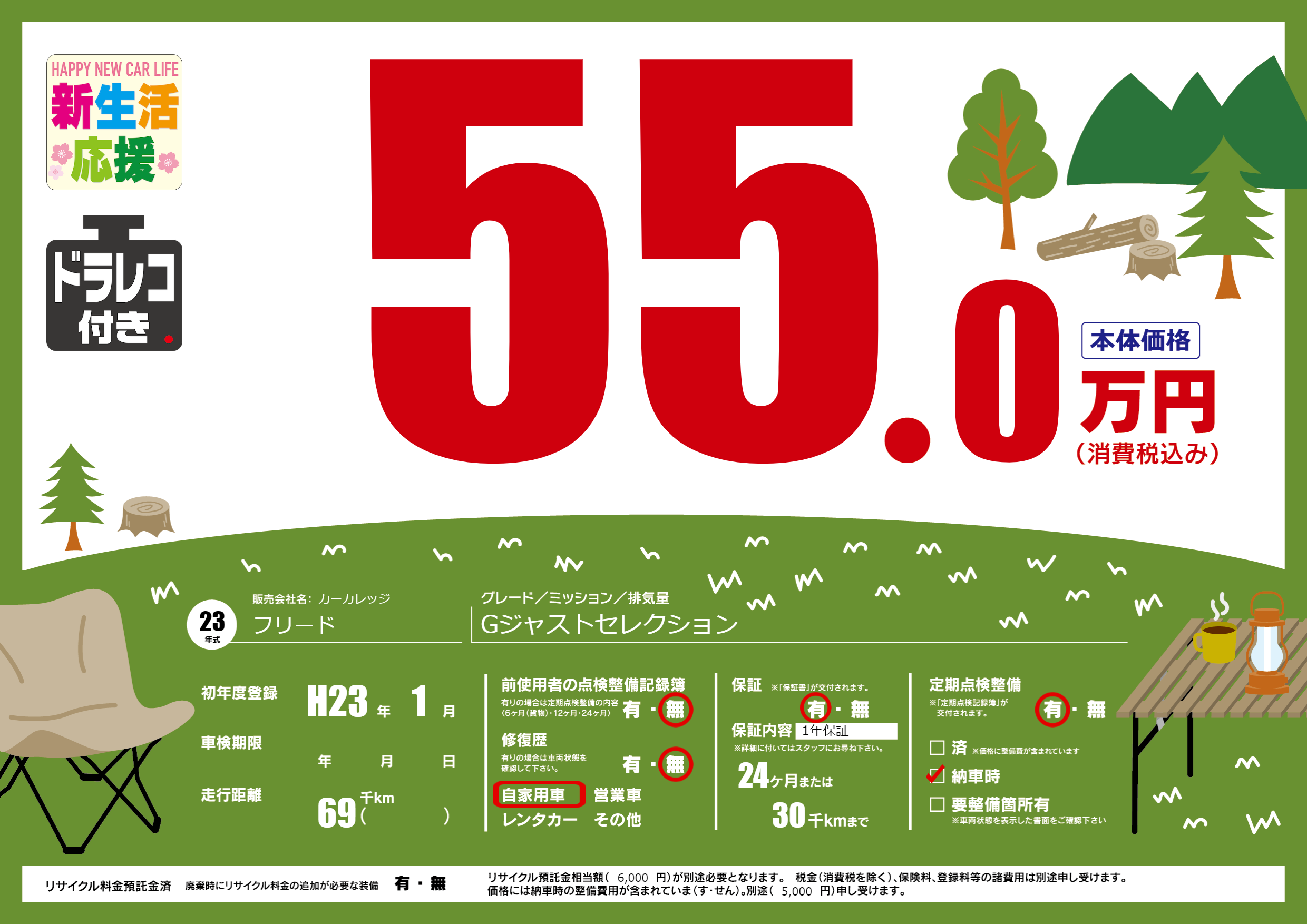 | 走行キロ | 6.9万km | 初年度登録 | H23年1月 |