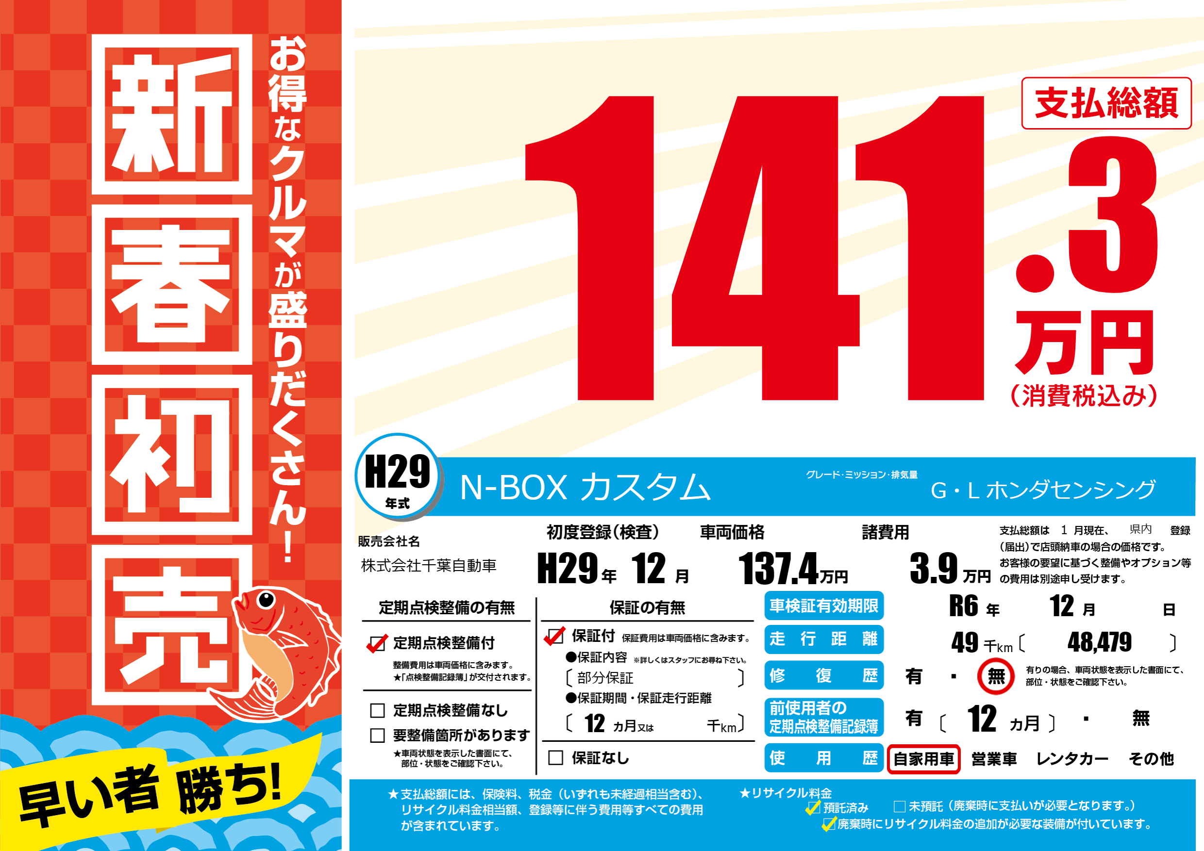 | 走行キロ | 4.9万km | 初年度登録 | H29年12月 |