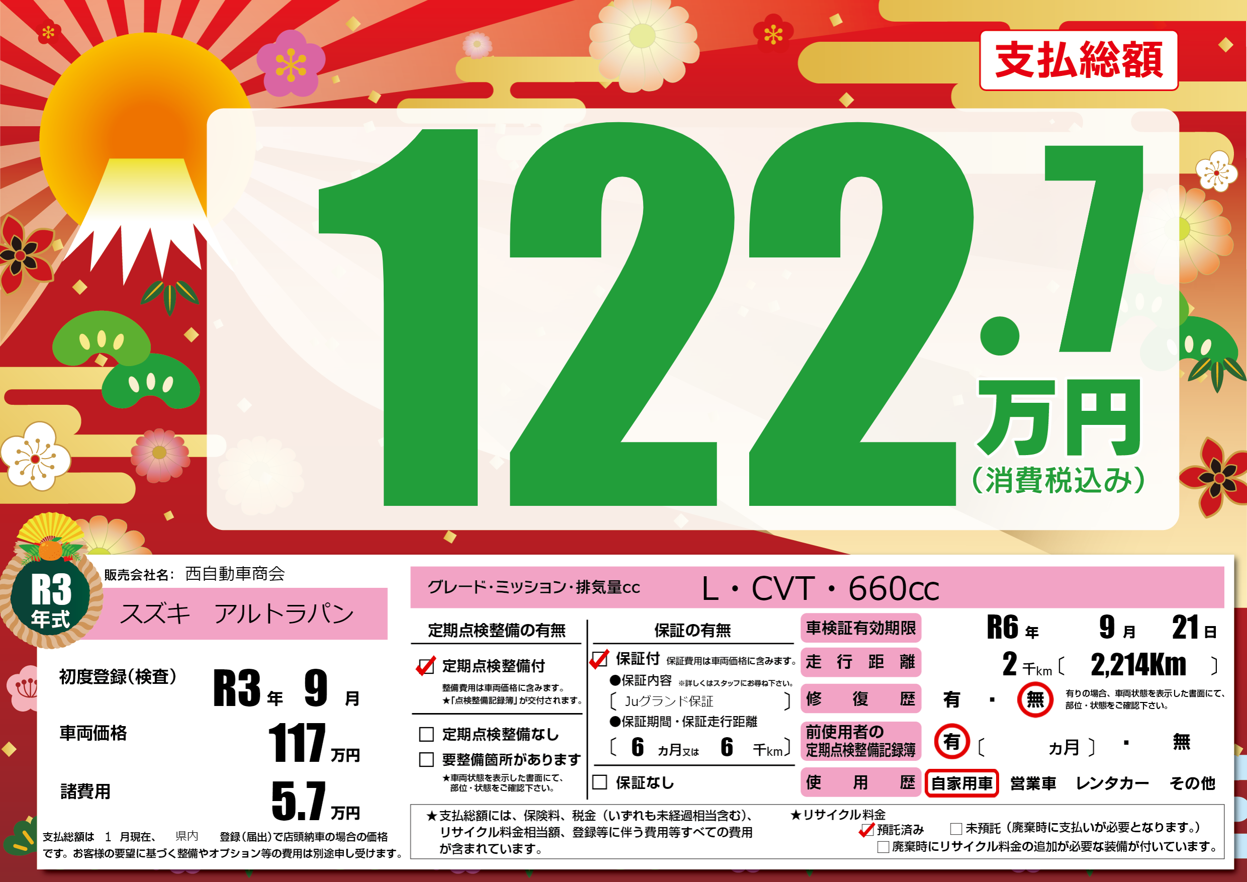 | 車検制限 | R6年 9月 21日 | ||
