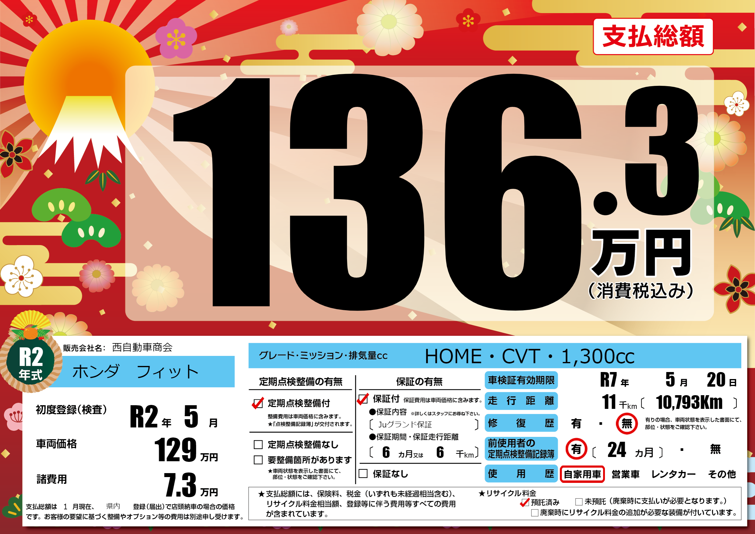 なし | 車検制限 | R7年5月20月 |