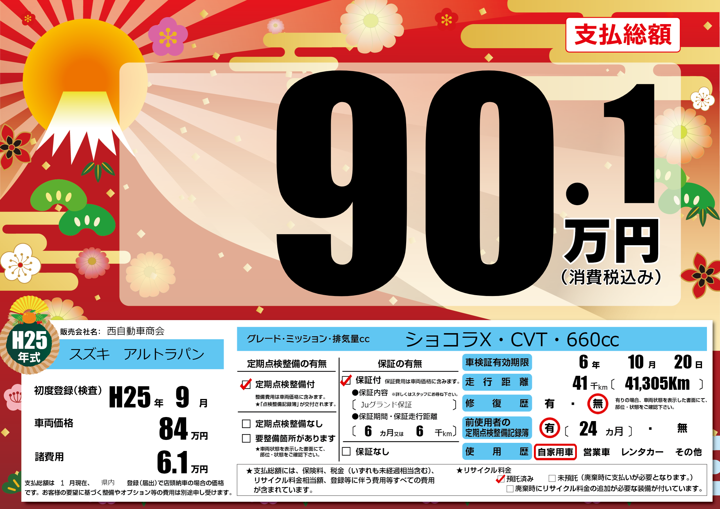 | 車検制限 | 6年 10月 20日 | ||