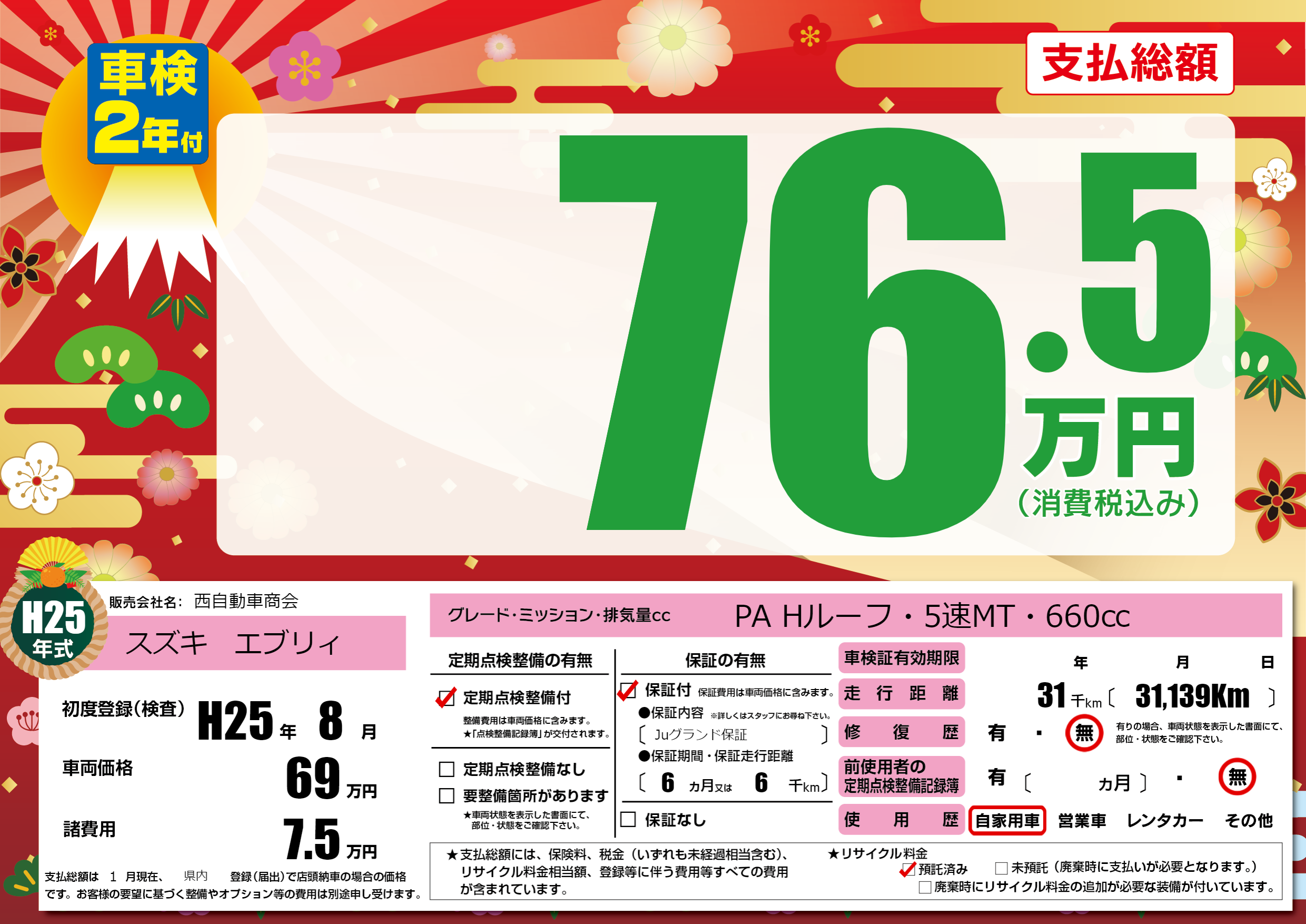 | 車名 | スズキ エブリィ | グレード ミッション 排気量 |