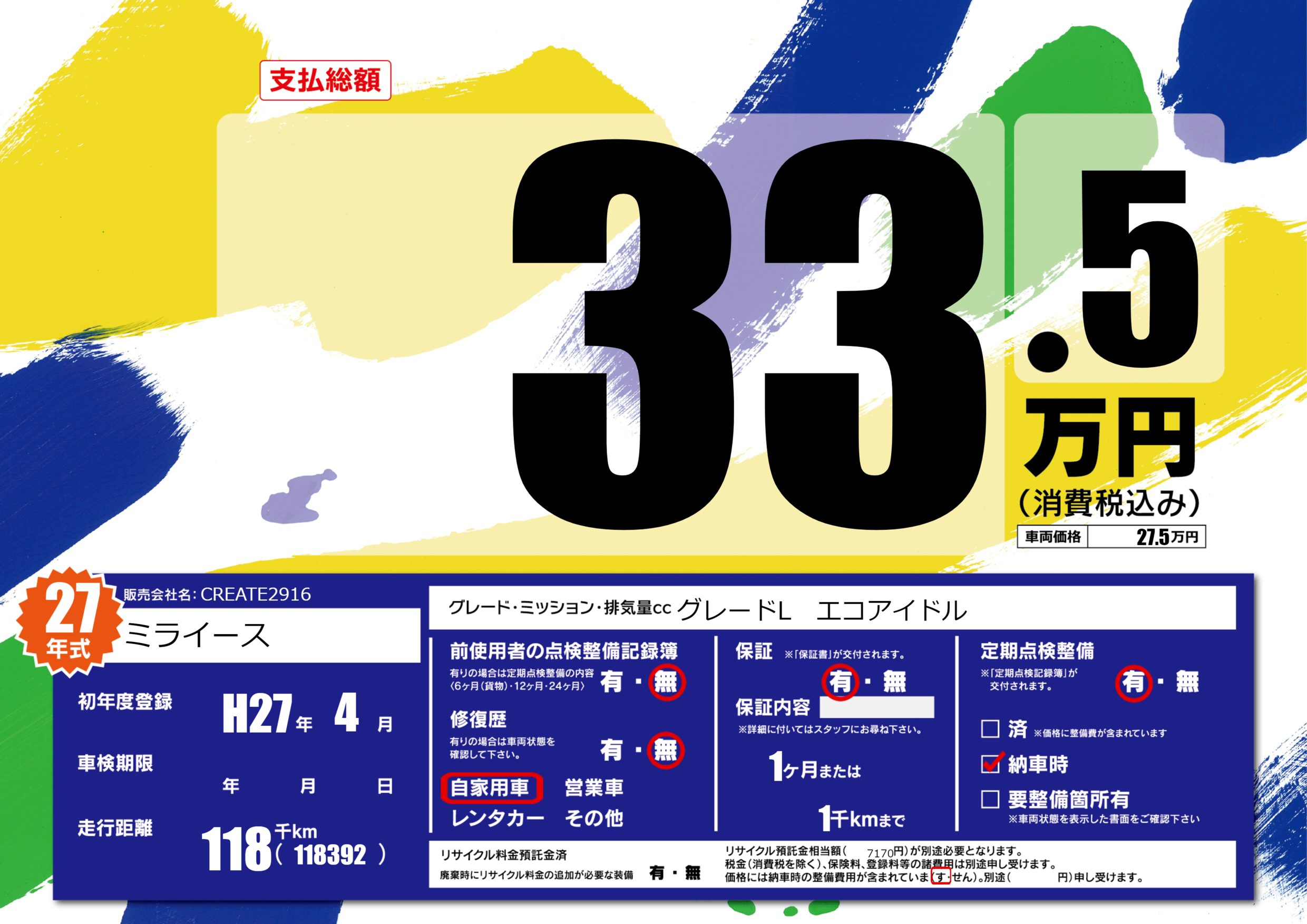 | 初年度登録 | H27年4月 | ||