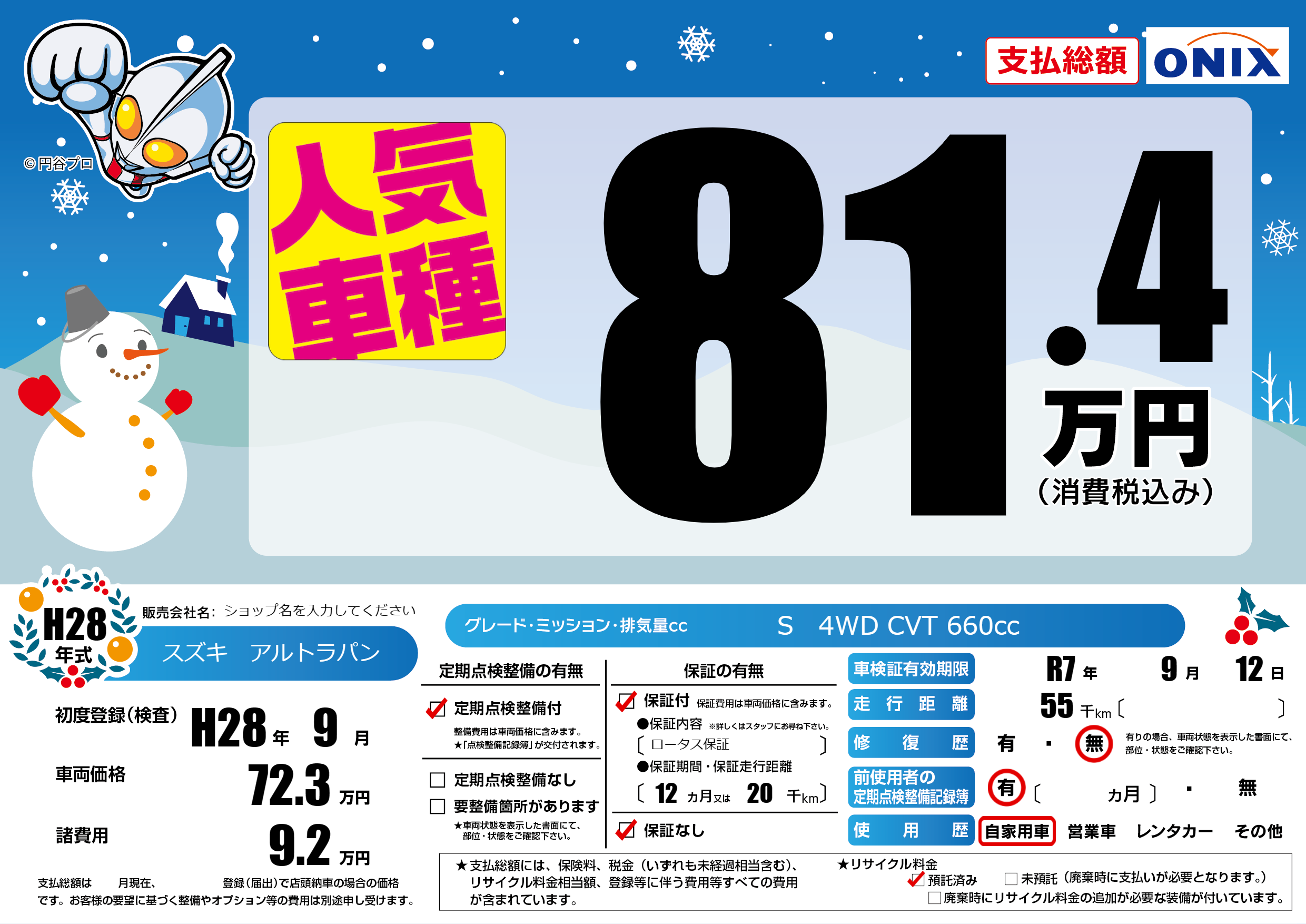 保証なし 保証内容(ロータス保証) 12ヶ月または(20)千kmまで |