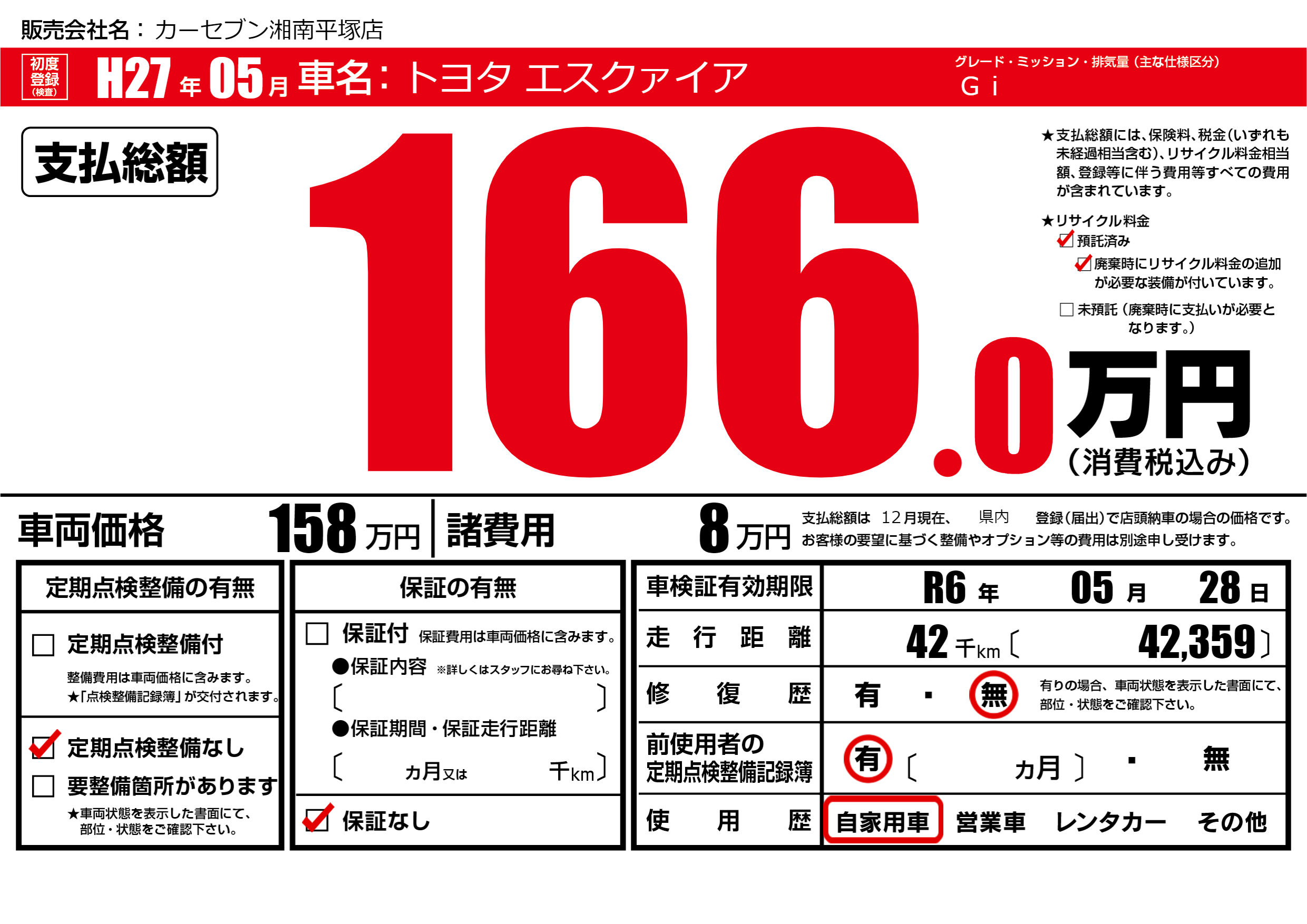 なし | 車検制限 | R6年05月28月 |