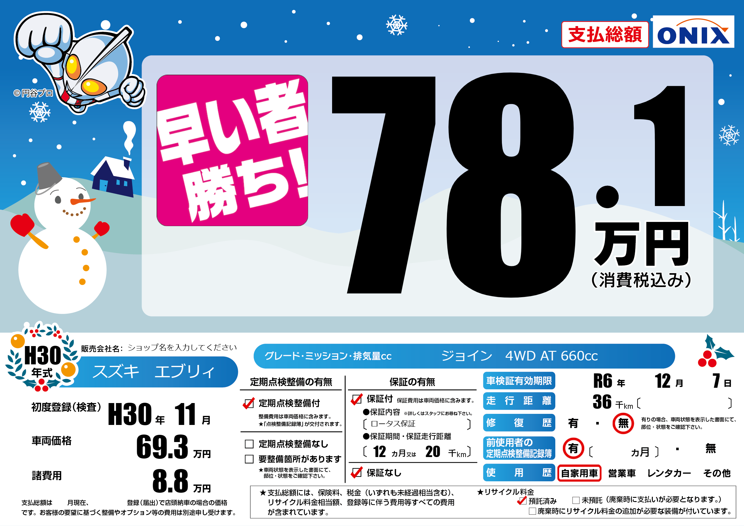 | 車検制限 | R6年 12月 7日 | ||