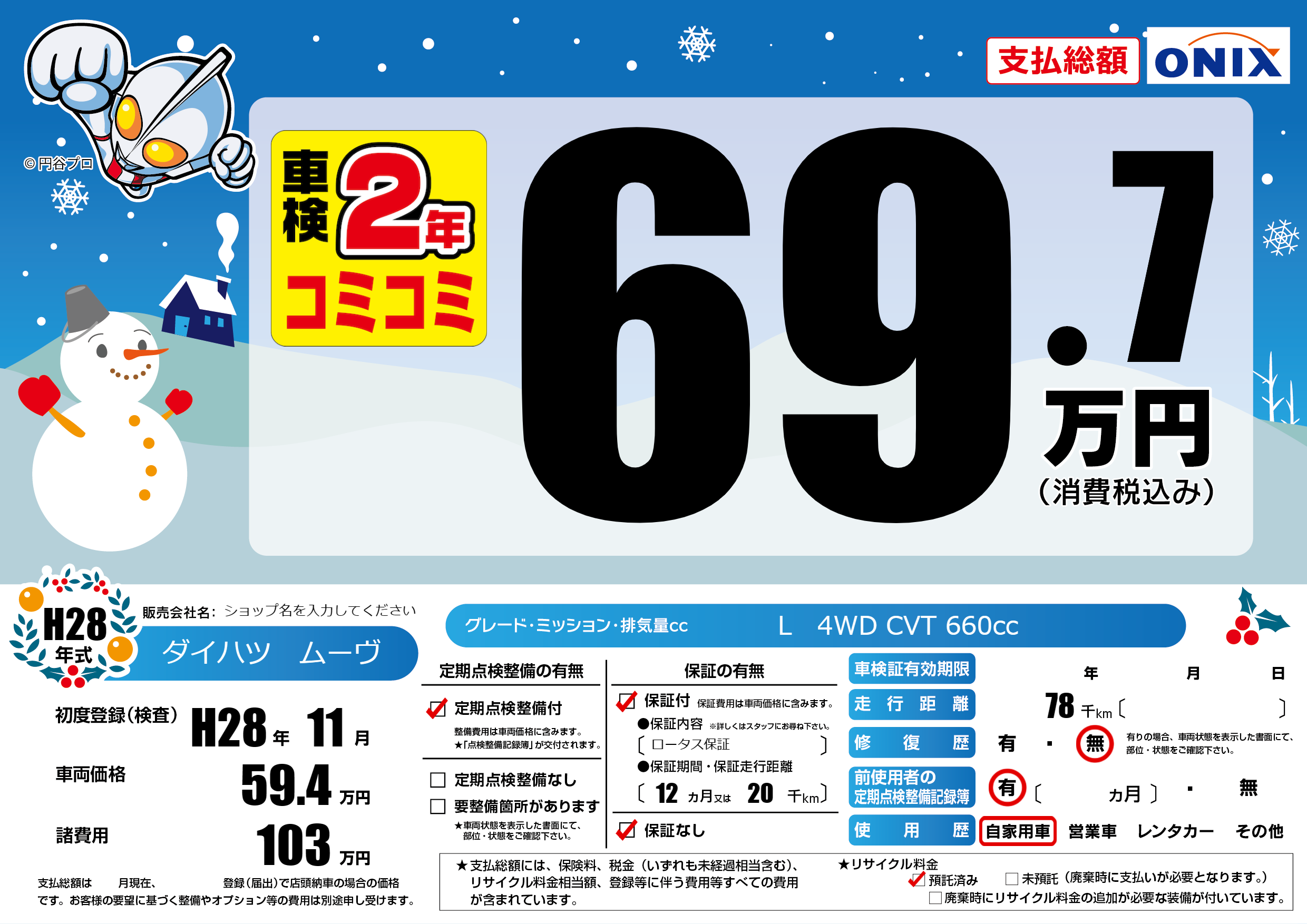 | 走行キロ | 7.8万km | 初年度登録 | H28年11月 |