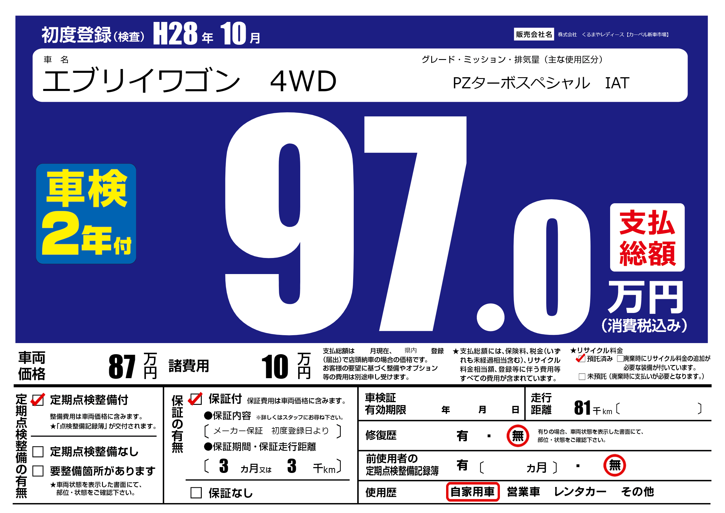 | 定期点検整備 | 定期点検整備あり | ||