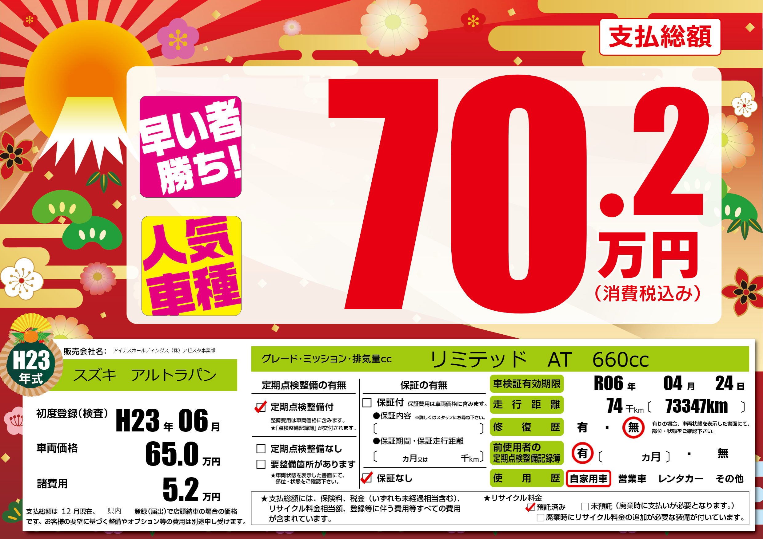 | 走行キロ | 7.4万km | 初年度登録 | H23年06月 |