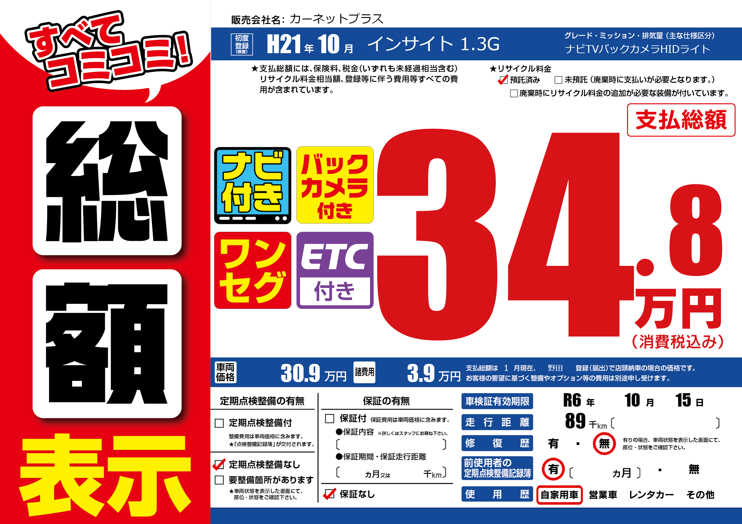 | 車検制限 | R6年 10月 15日 | ||
