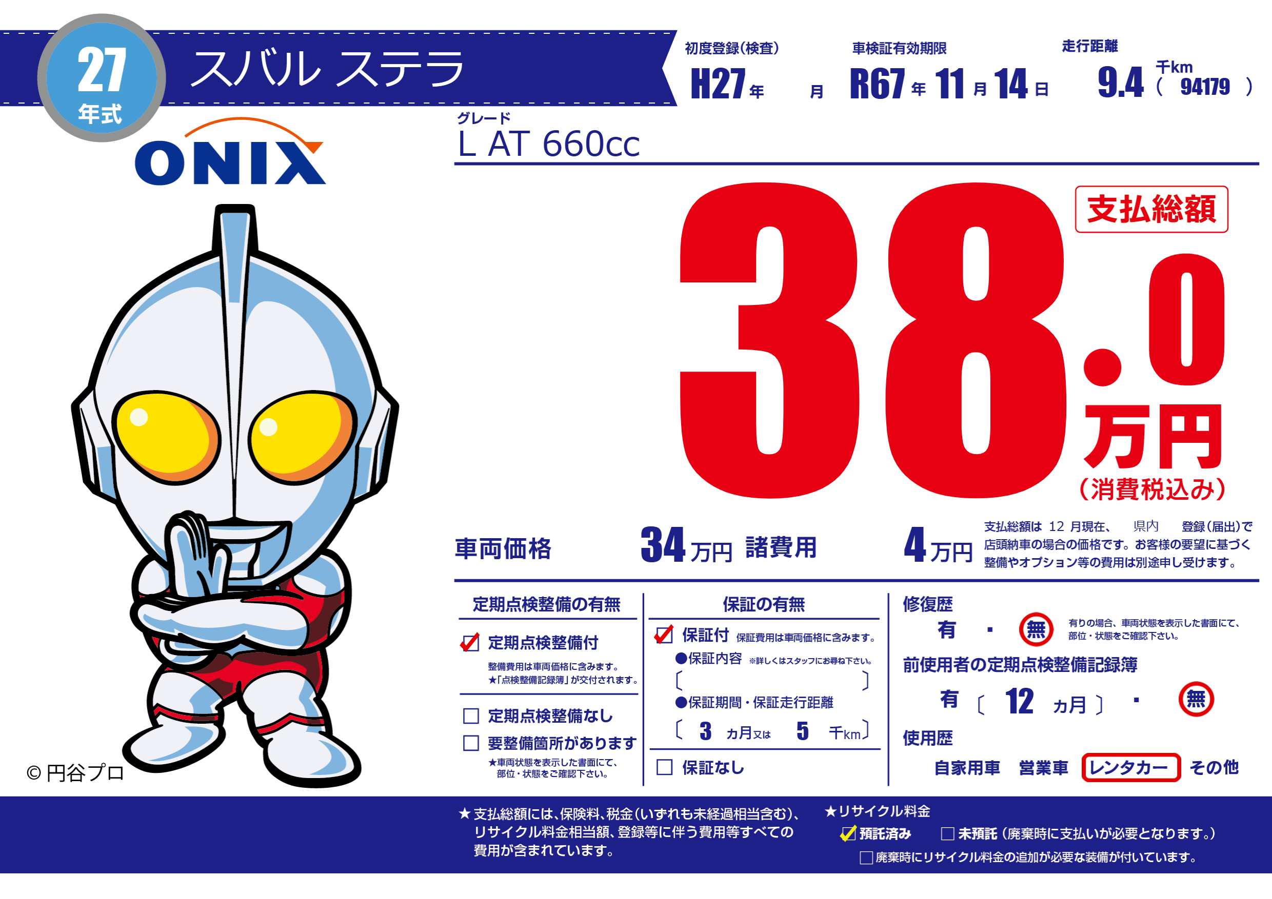 | 車名 | スバル ステラ | グレード ミッション 排気量 |