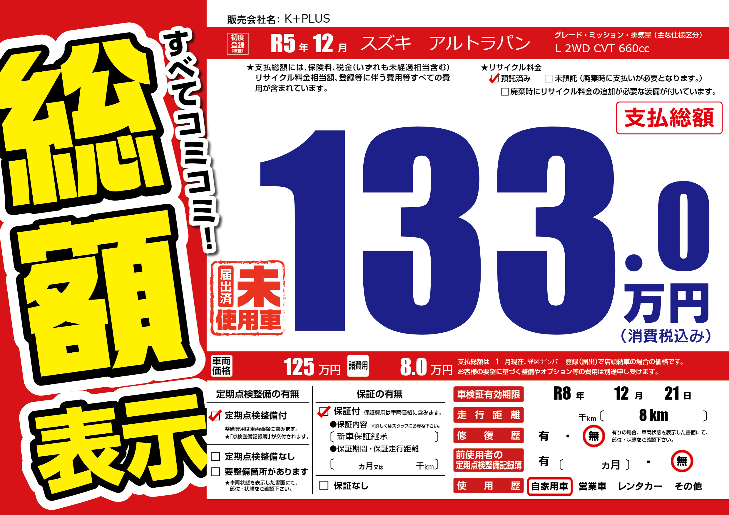 なし | 車検制限 | R8年12月21月 |