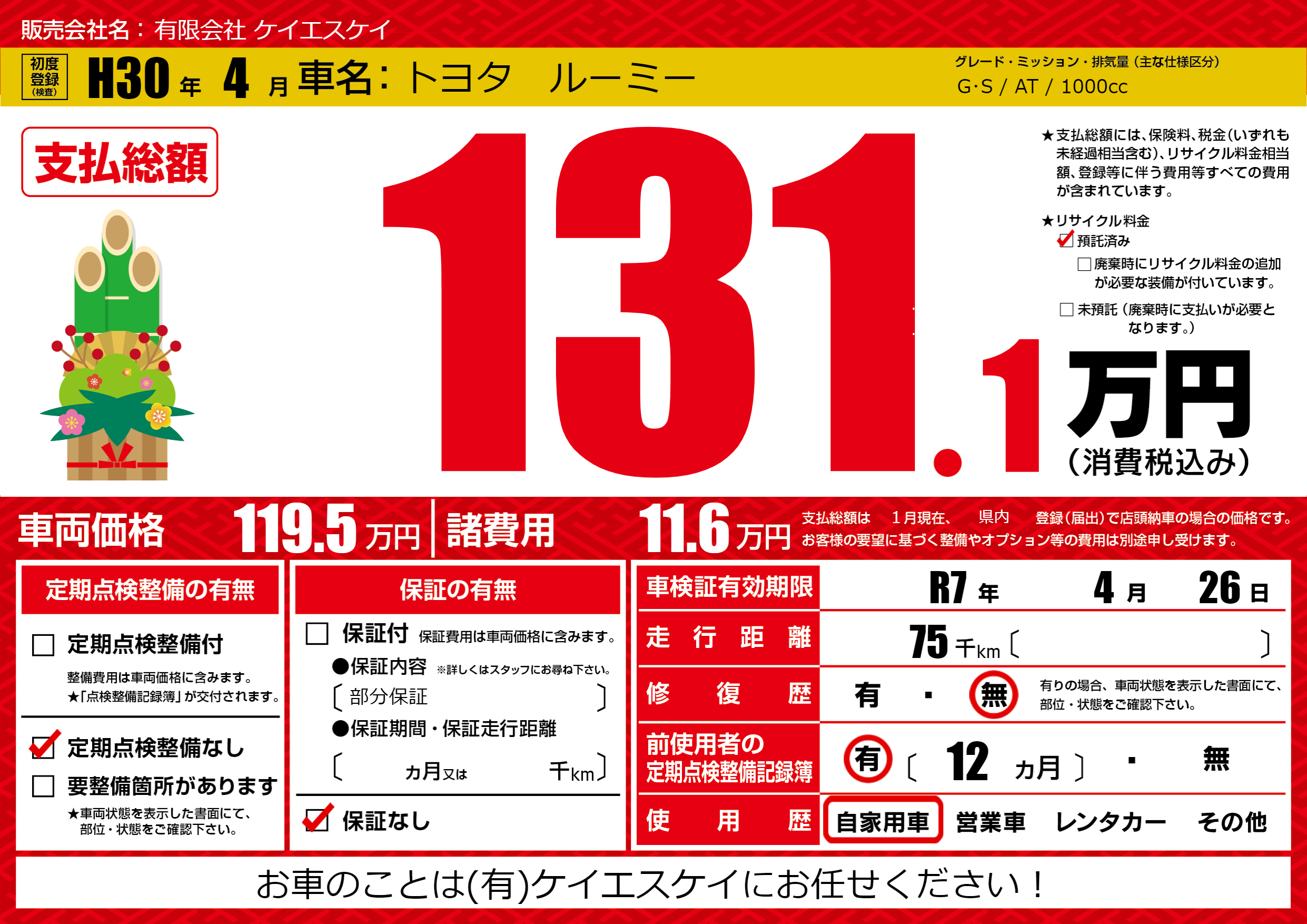 なし | 車検制限 | R7年4月26月 |