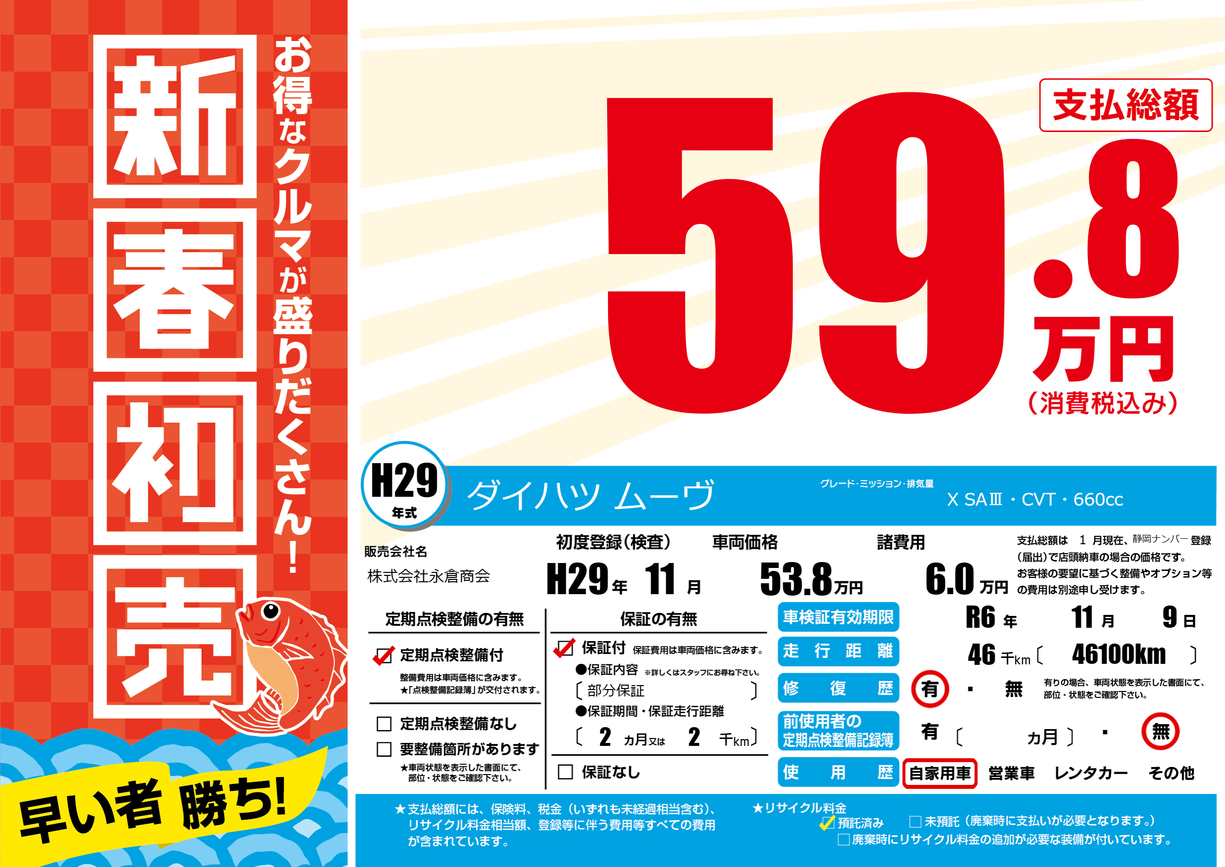 | 走行キロ | 4.6万km | 初年度登録 | H29年11月 |
