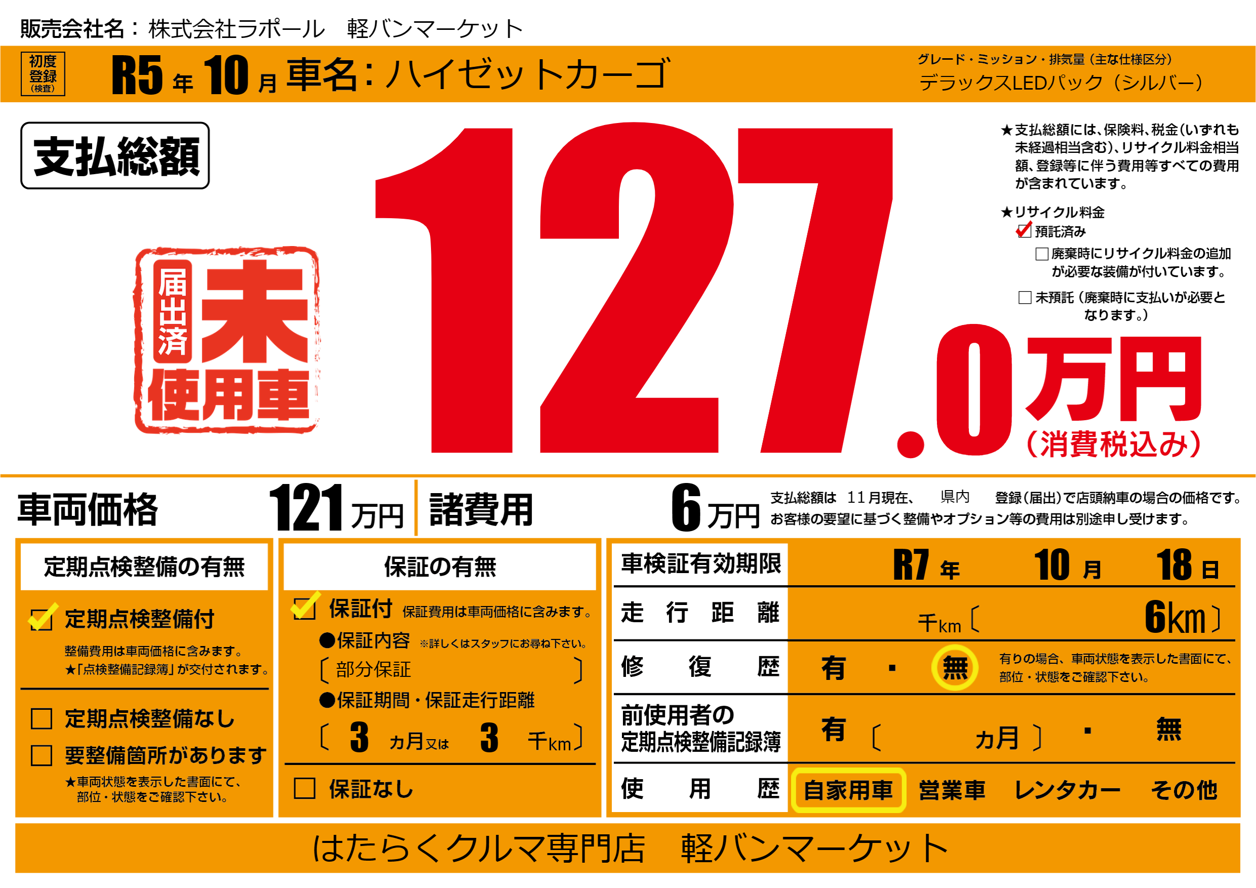 株式会社ラポール 軽バンマーケットの展示車をすべて見る
