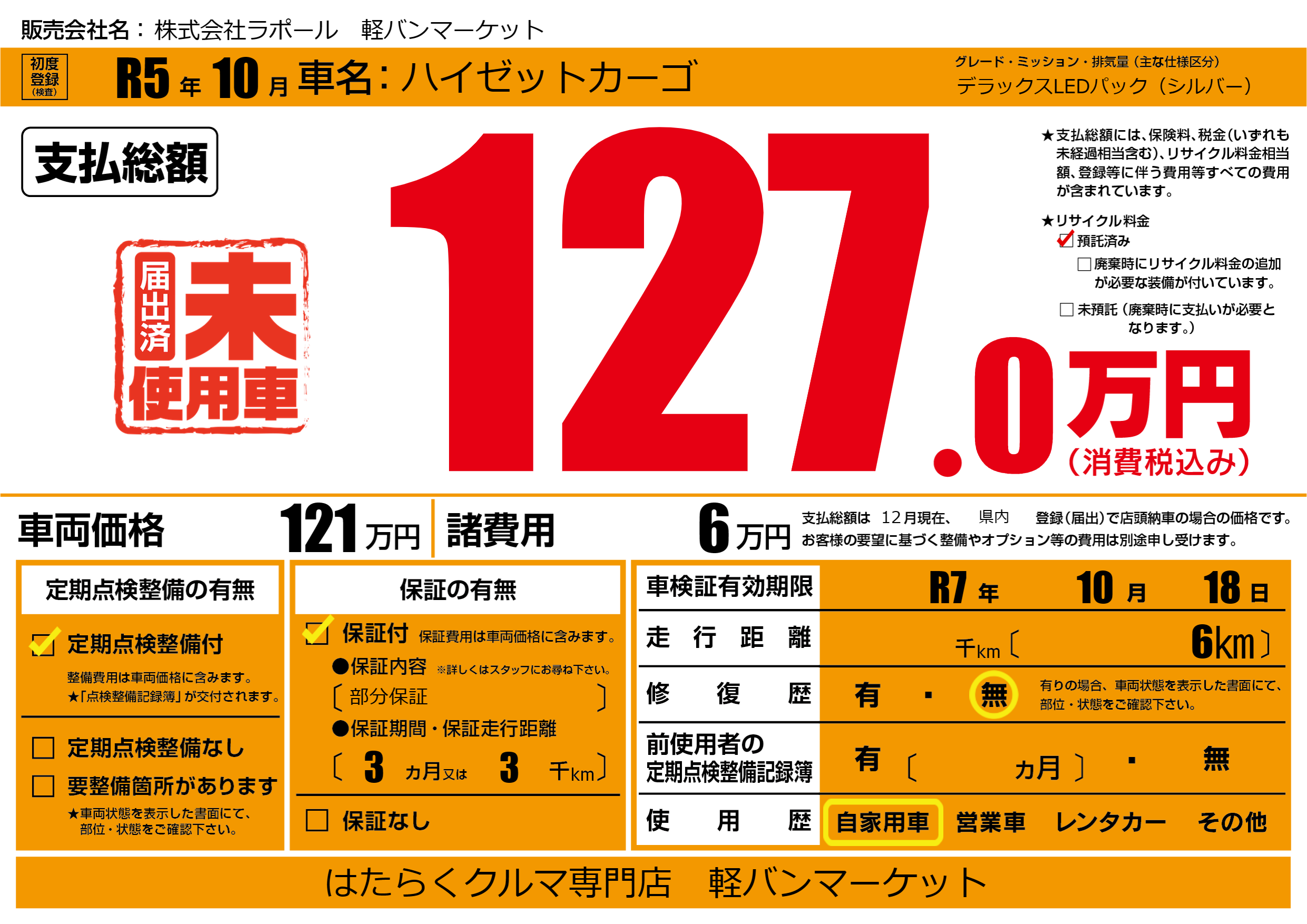 | 走行キロ | - | 初年度登録 | R5年10月 |