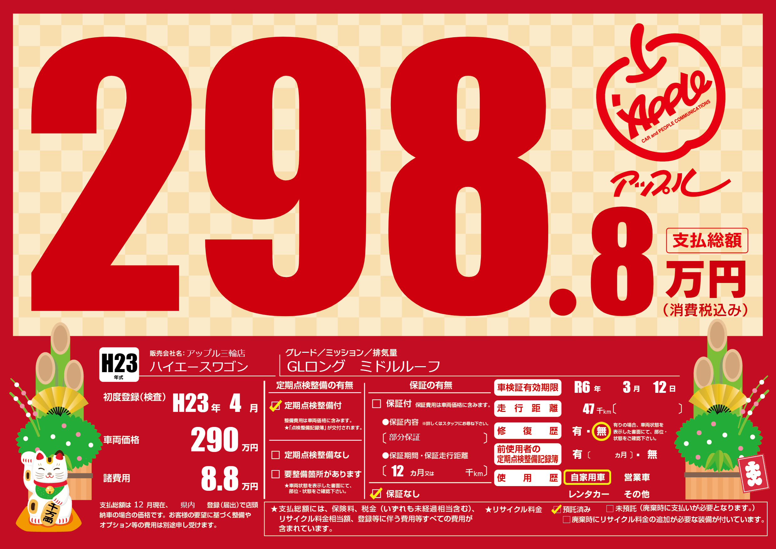 | 走行キロ | 4.7万km | 初年度登録 | H23年4月 |