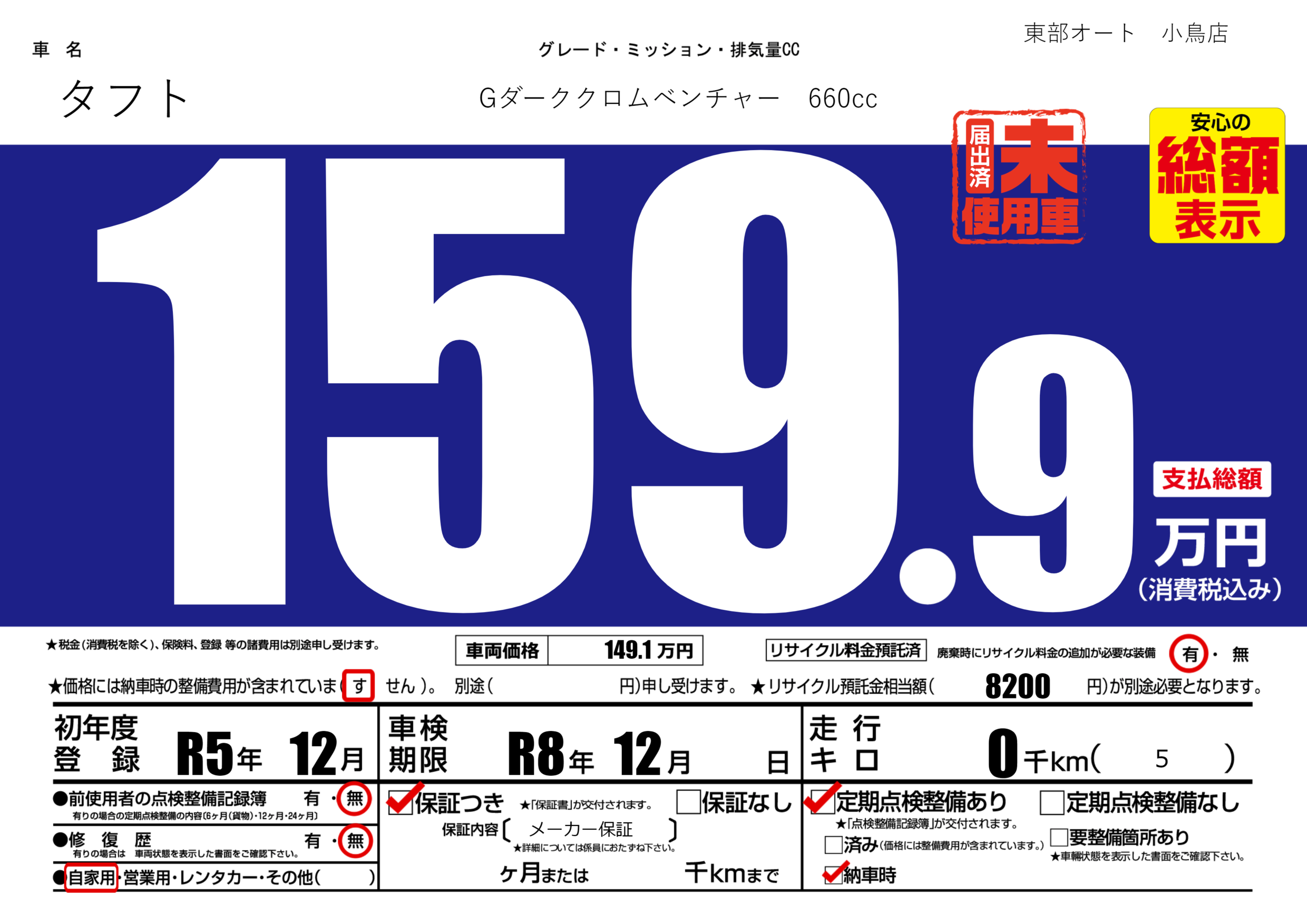 | 定期点検整備 | 定期点検整備あり 納車時あり | ||