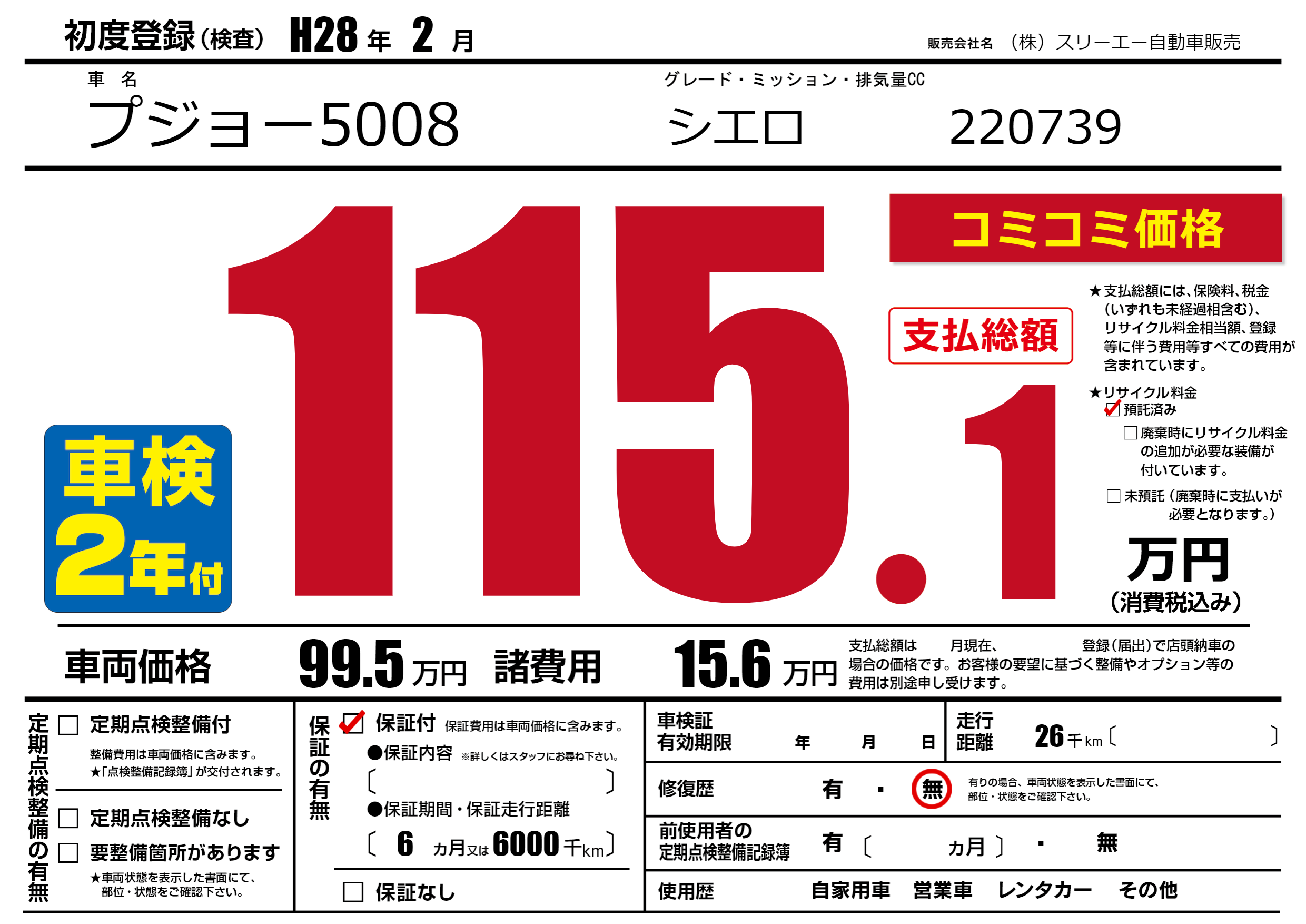 保証付き 保証内容(---) 6ヶ月または(6000)千kmまで |