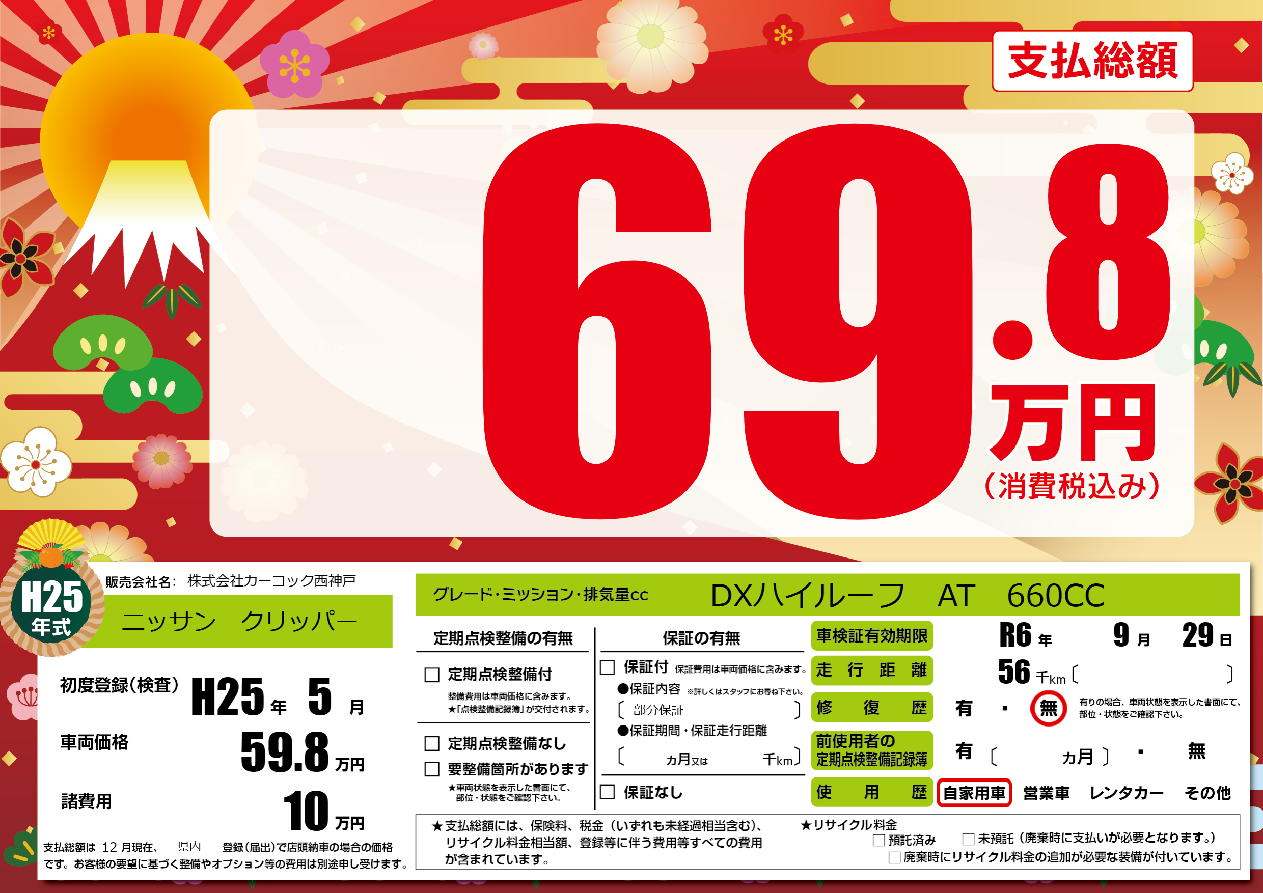 | 車名 | ニッサン クリッパー | グレード ミッション 排気量 |