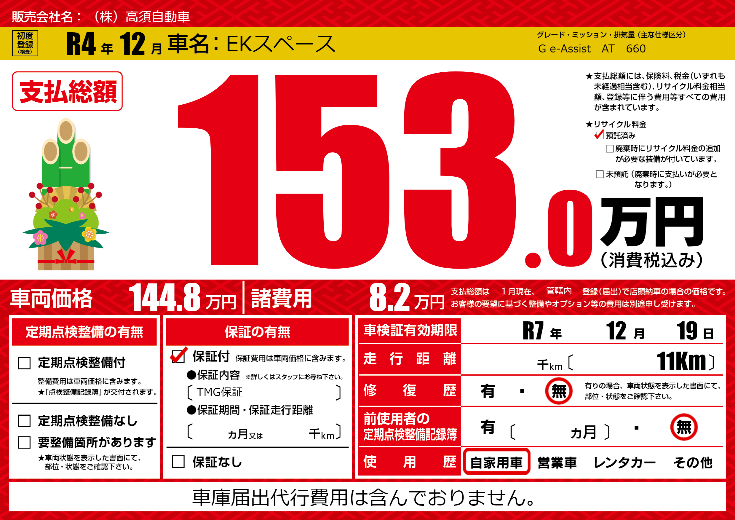 保証付き 保証内容(TMG保証) ---ヶ月または()千kmまで |