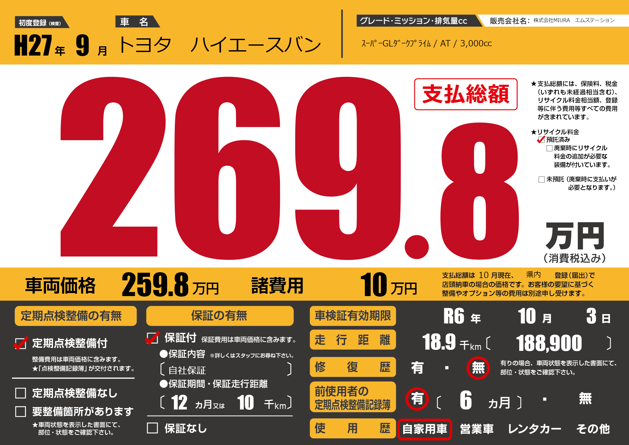 なし | 車検制限 | R6年10月3月 |