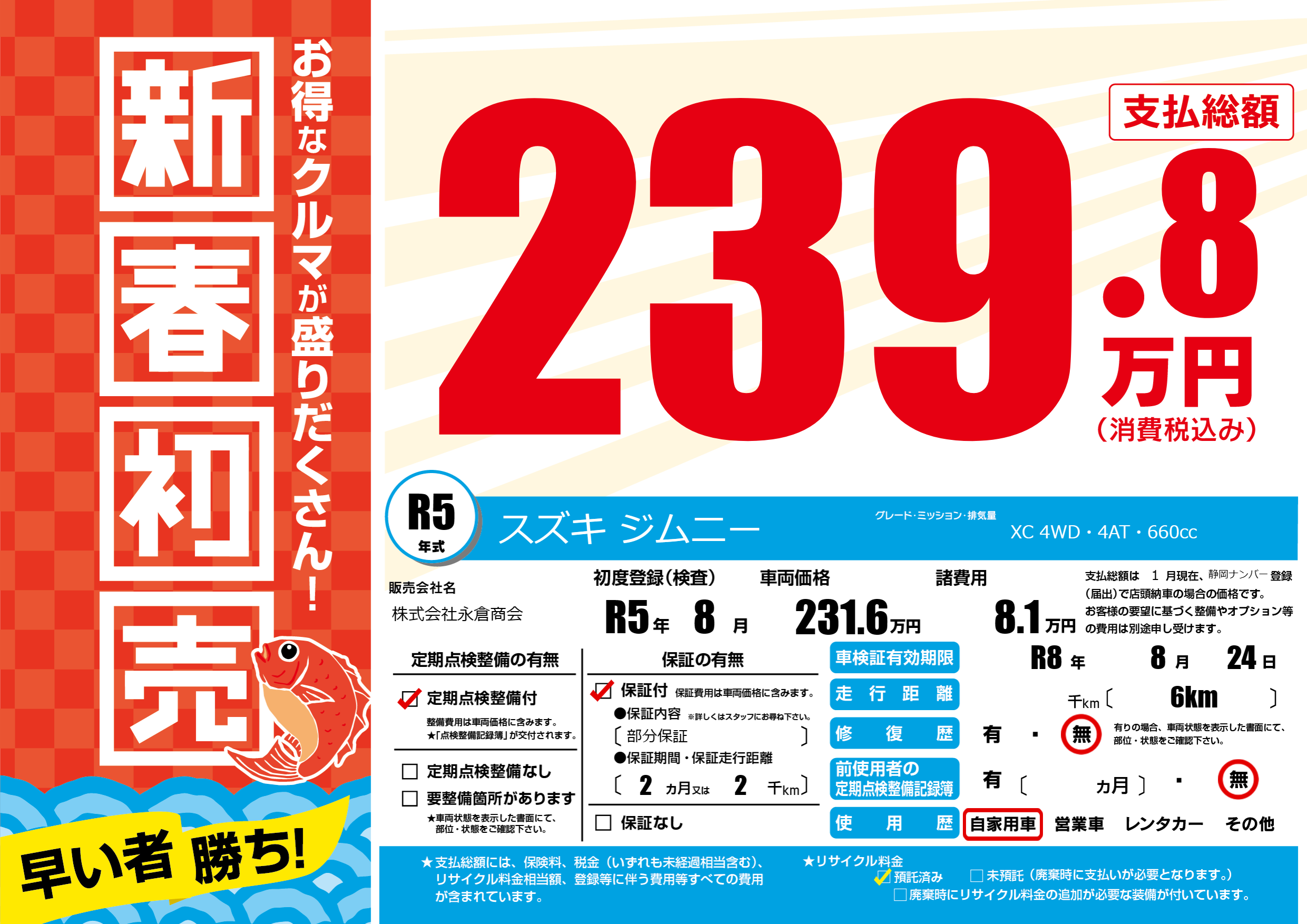 | 走行キロ | - | 初年度登録 | R5年8月 |
