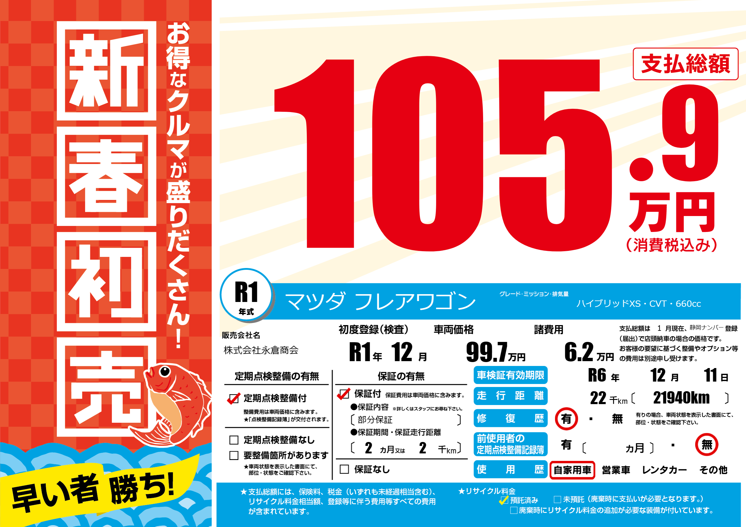 | 車名 | マツダ フレアワゴン | グレード ミッション 排気量 |