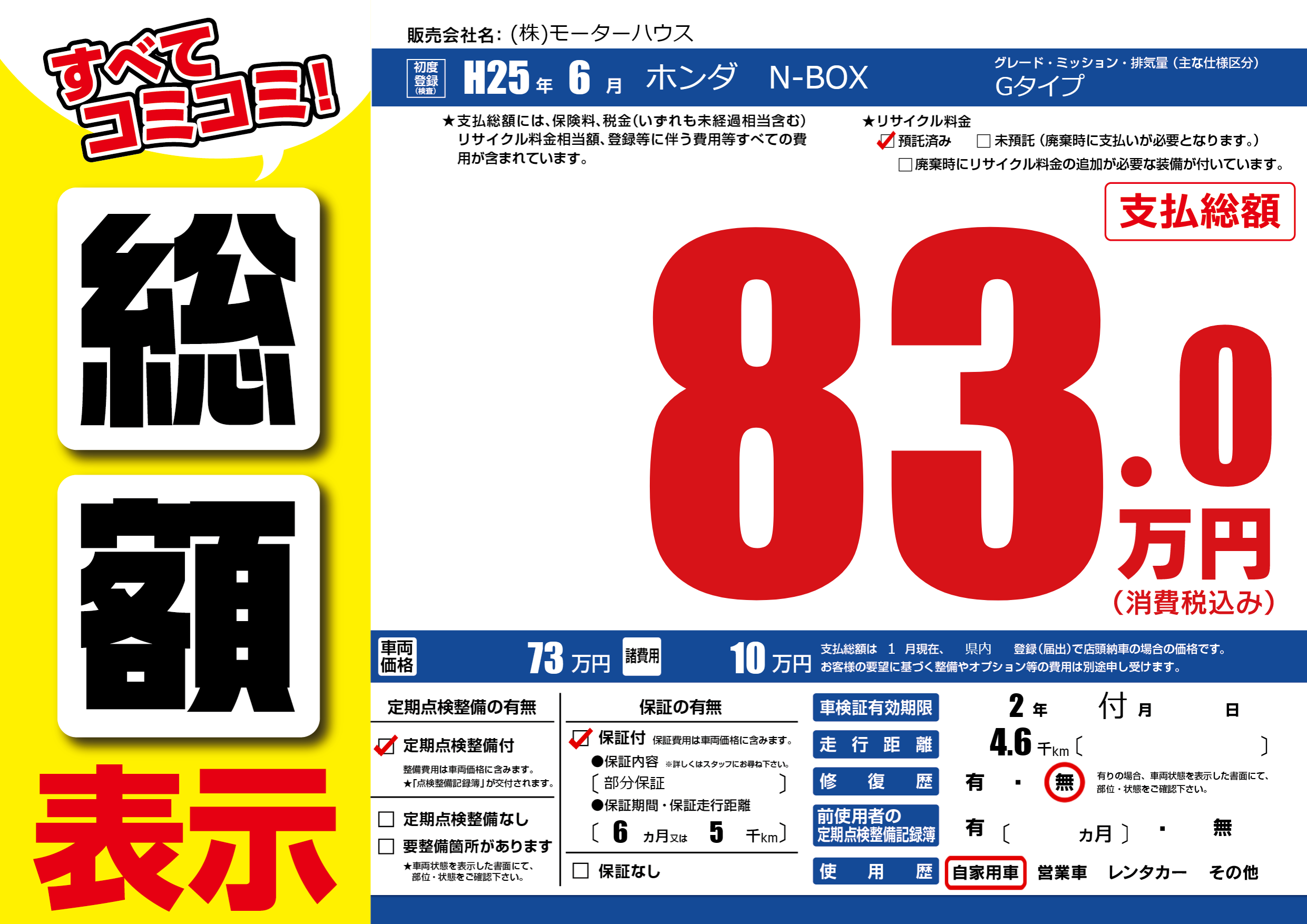 保証なし 保証内容(部分保証) 6ヶ月または(5)千kmまで |