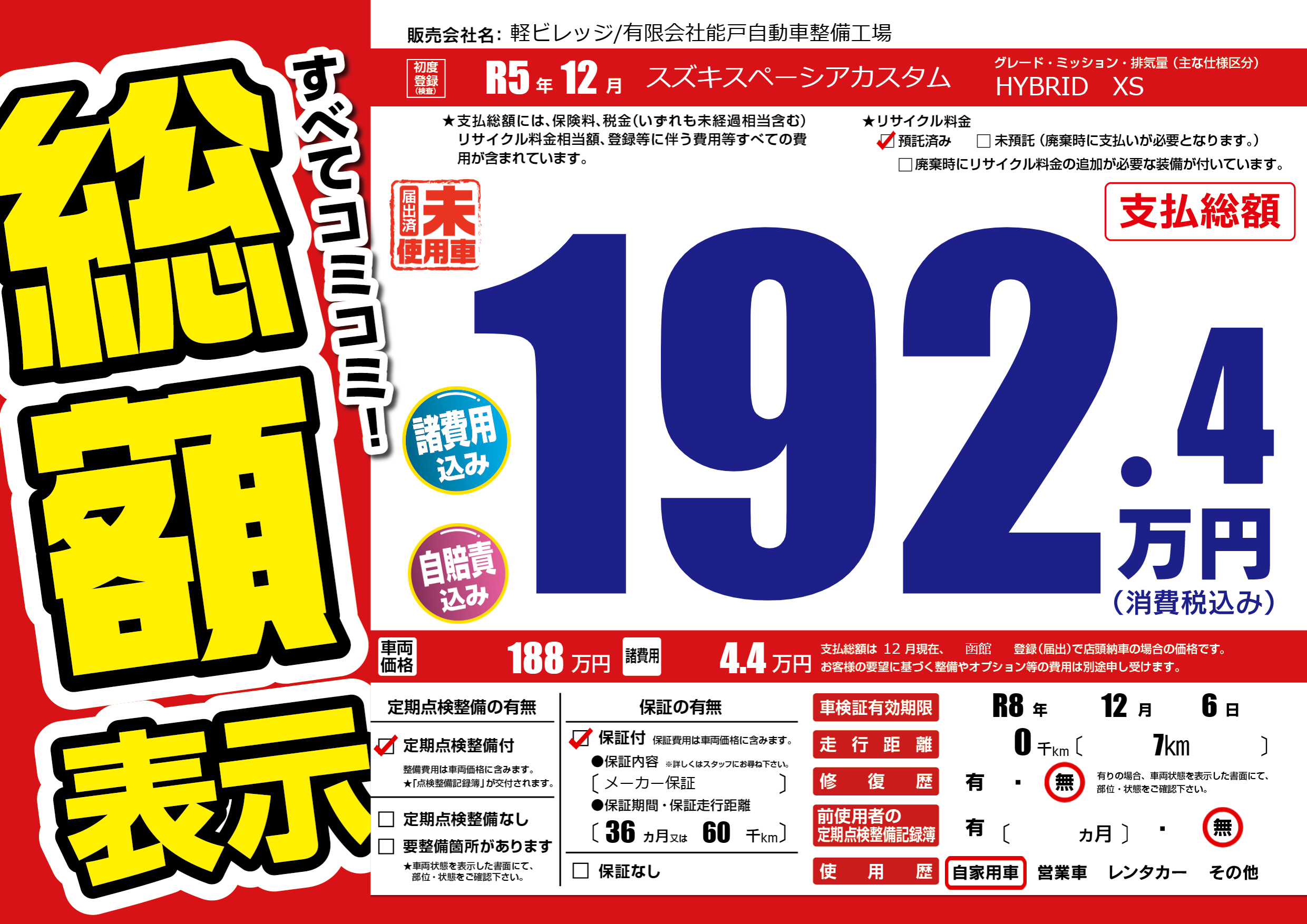 | 走行キロ | - | 初年度登録 | R5年12月 |