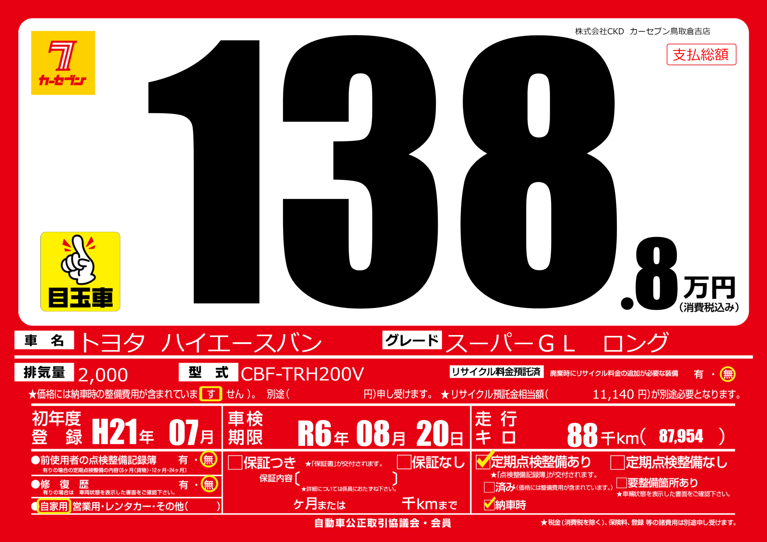| 走行キロ | 8.8万km | ||