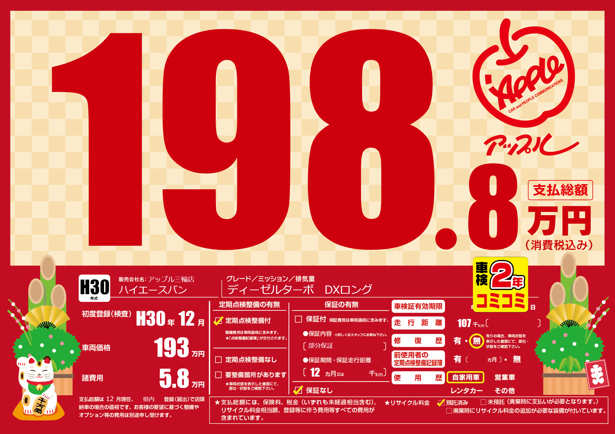 | 初年度登録 | H30年12月 | ||