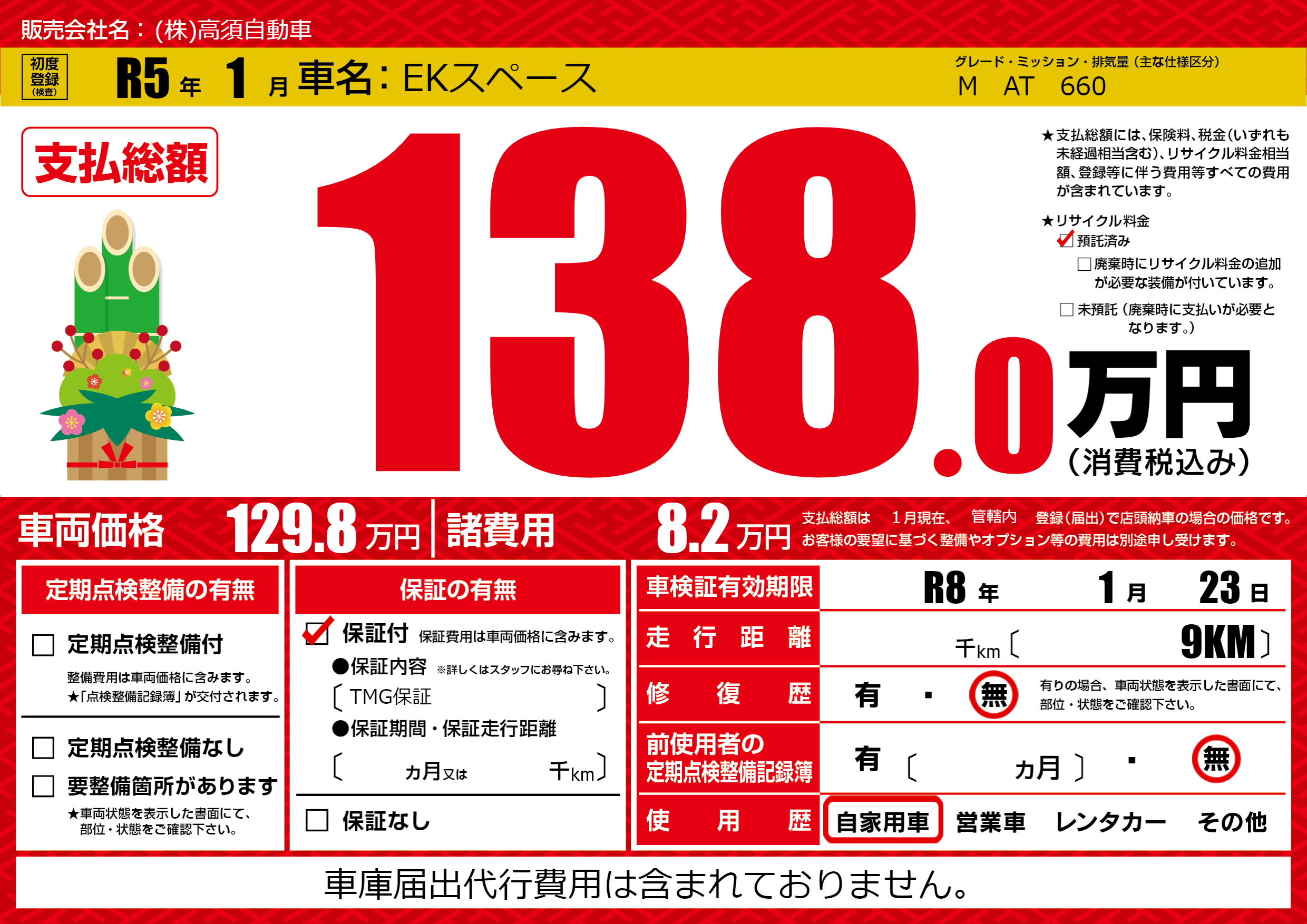 なし | 車検制限 | R8年1月23月 |