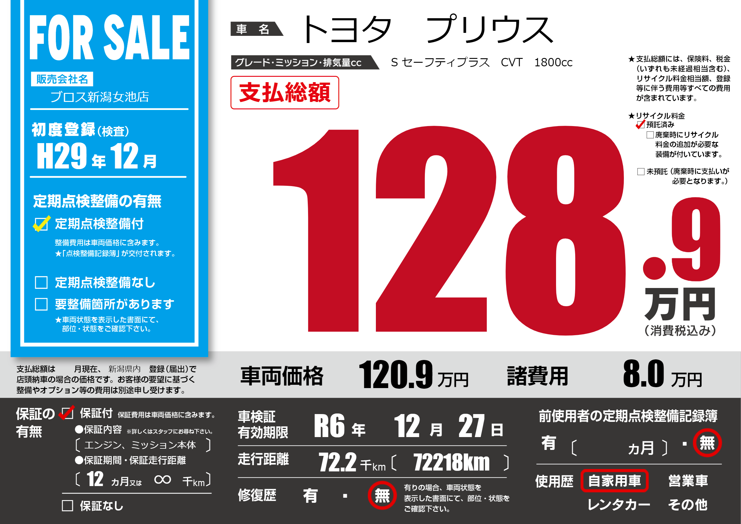| 車検制限 | R6年 12月 27日 | ||