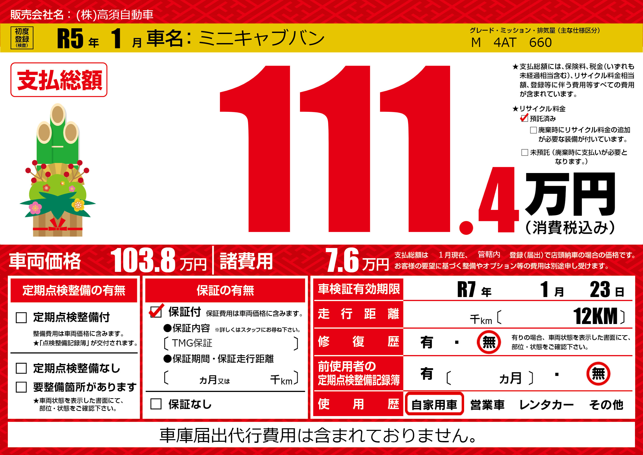 保証付き 保証内容(TMG保証) ---ヶ月または()千kmまで |