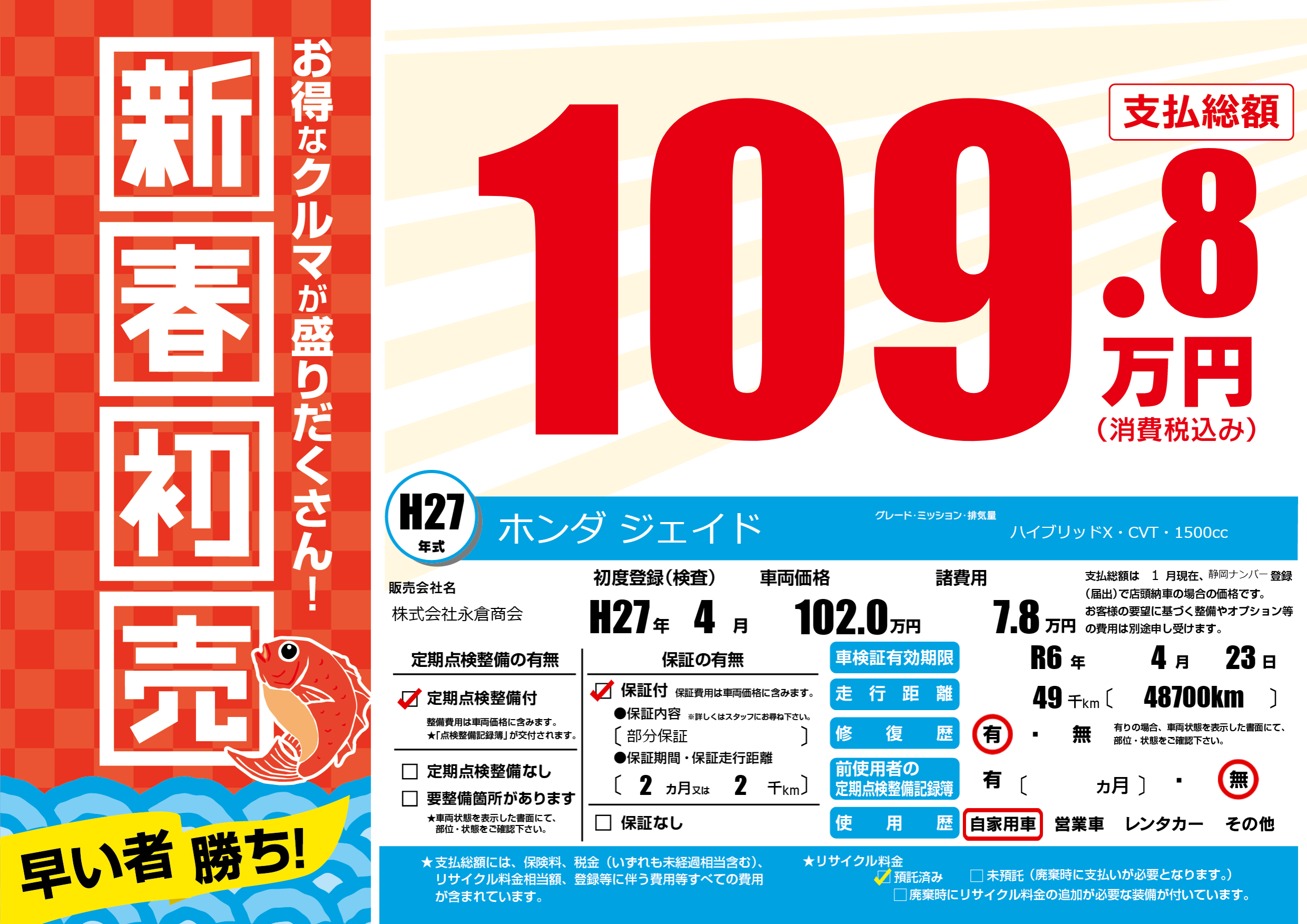 | 車名 | ホンダ ジェイド | グレード ミッション 排気量 |