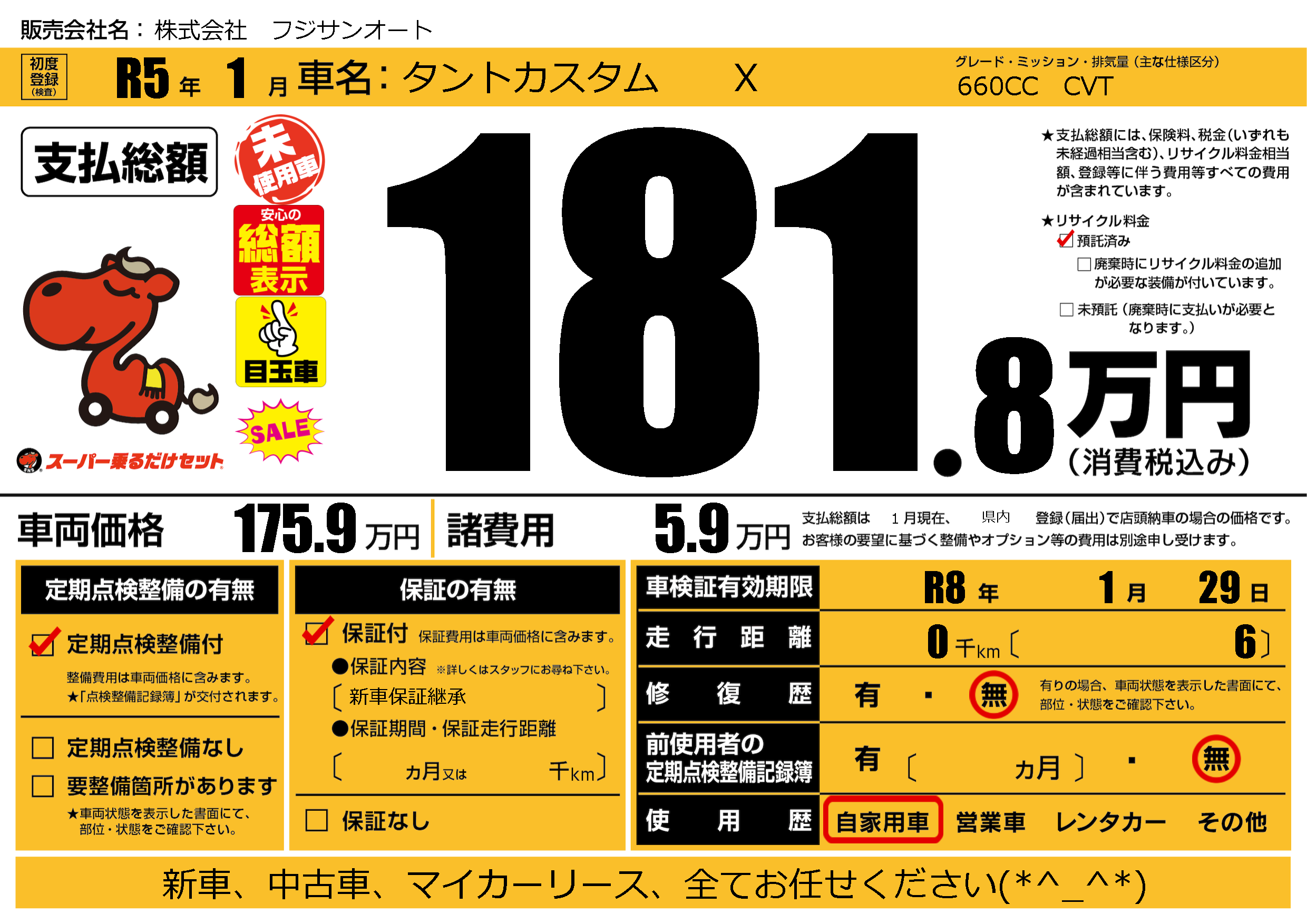 | 走行キロ | - | 初年度登録 | R5年1月 |