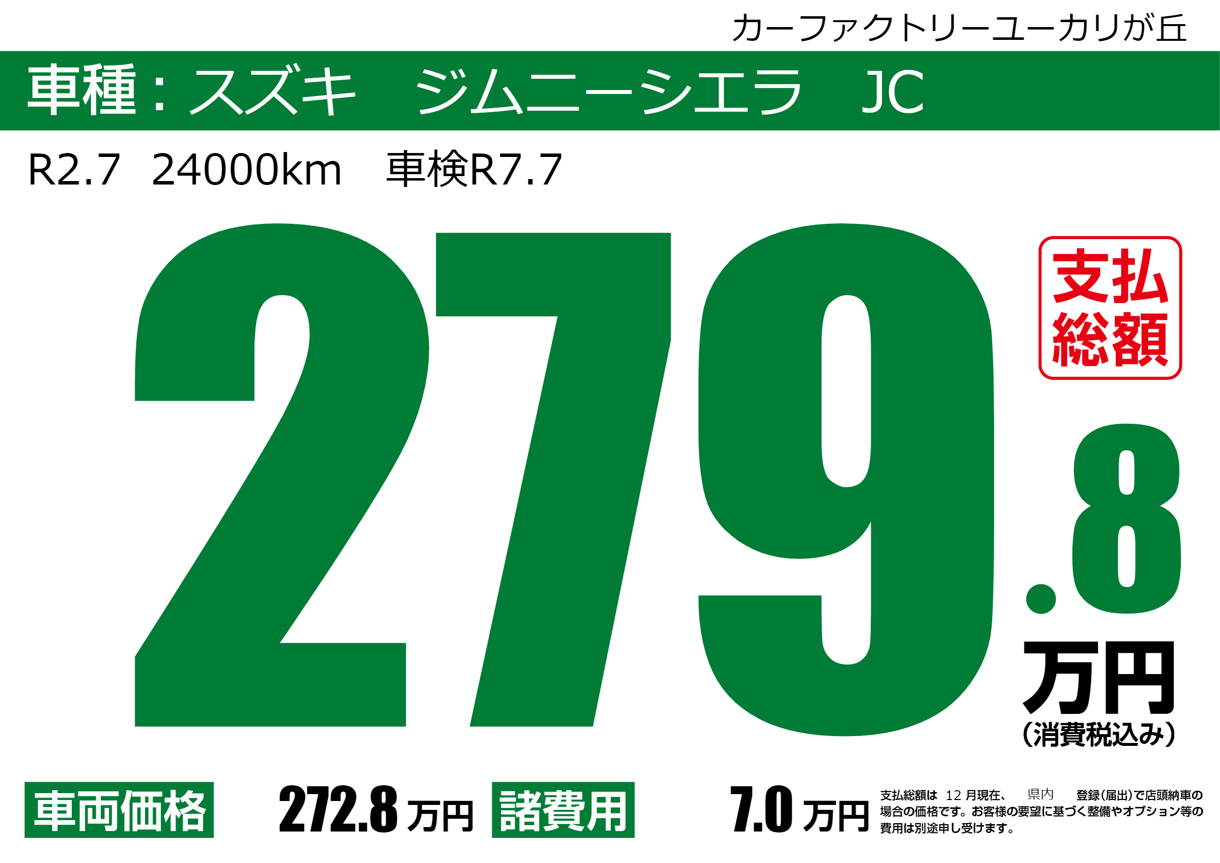 | 車名 | スズキ ジムニーシエラ JC | グレード ミッション 排気量 |